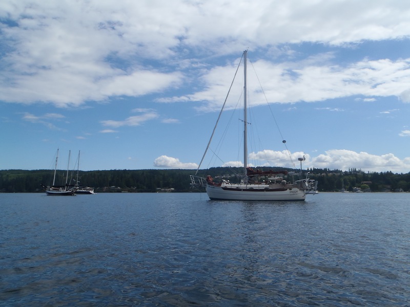 Needing to make port before our light was gone we fired up the old iron spinnaker and motored sailed the last 6 miles doing about 7.5 to 8.5 knts! oh man were we scootin! We checked our charts and watched the plotter closely dodging the rocks into Port Ludlow and dropped our hook. Made a quick dinner and we hit the sack.