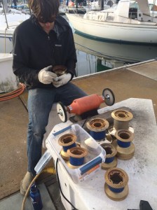We had looked into getting our winches re-chrome platted, but when we found out how much it was going to cost us, (over $2000) we opted to just have them DE- Chromed. Jon said it was quite the adventure to find this place in downtown Oakland. But once he got there the gentlemen (Also Named Jon) who helped him was very nice. Johnson Plating Company took all 8 of our winches and put them into an acid eating boiling steaming hellish looking thing, Prim Jon then says to Chrome Jon ” They will just be bronze when it’s done right?” Chrome Jon then takes out one of the winches that are almost done with the first process and says “here, this is what they will look like” as he hands Prism Jon a bright pink rough winch. I wish I could have been there to see Prism Jon’s face as he stood there shocked thinking ” oh hell what have I done, I really don’t want pink winches on my boat!” I think the Chrome Jon saw the panic in Jon’s face and scrubbed the pink winch with a scotch bright pad to reveal a nice bronze color. The natural skin color soon then returned to Prism Jon’s face and all was right with the world again.