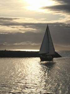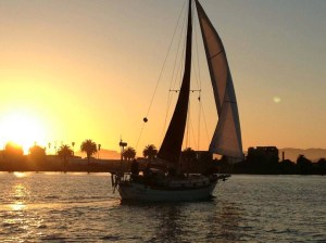 | Jon and Bob coming in at sunset on Bob’s west sail 32′ |
