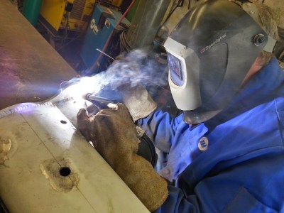 | Welding up a small crack on the mast head |