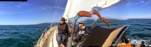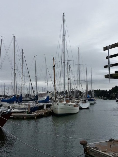 We have been out sailing in the warm spring weather before the cold and windy summer sets in! We have been out buddy boating with our friends Josh and Bob. Josh has a BCC30 (Bristol cannel cutter) and Bob has the best looking westsail 32′ you have ever seen. Jon and I were amazed on how well Prism did when sailing with those guys… we pretty much left them in the dust. Yes I am sure our HUGE 130% genoa had a lot to do with it, but still! We had a blast, headed over to TI (Treasure Island)and rafted up with Josh for a late lunch/early dinner and some drinks. We all took afternoon naps in the wonderful cove in the warm sun and enjoyed a great sunset sail back to Berkeley. We both got some amazing photos of our boats as we sailed home.