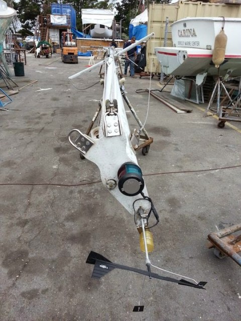 | Boat about to get the mast pulled |