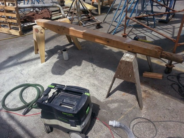 | Bowsprit down to bare wood |