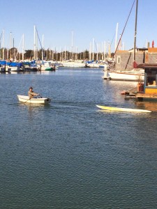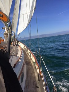 When we got back to the boat she was floating again on her water line. Jon and I rowed over and said hello and good bye to fellow sailors that were sailing toward warmer waters.. AKA south. Mom hailed us back and we set sail back for Berkeley as the family still had to drive to Santa Cruz to drop Marissa off and then back to Shaver Lake.