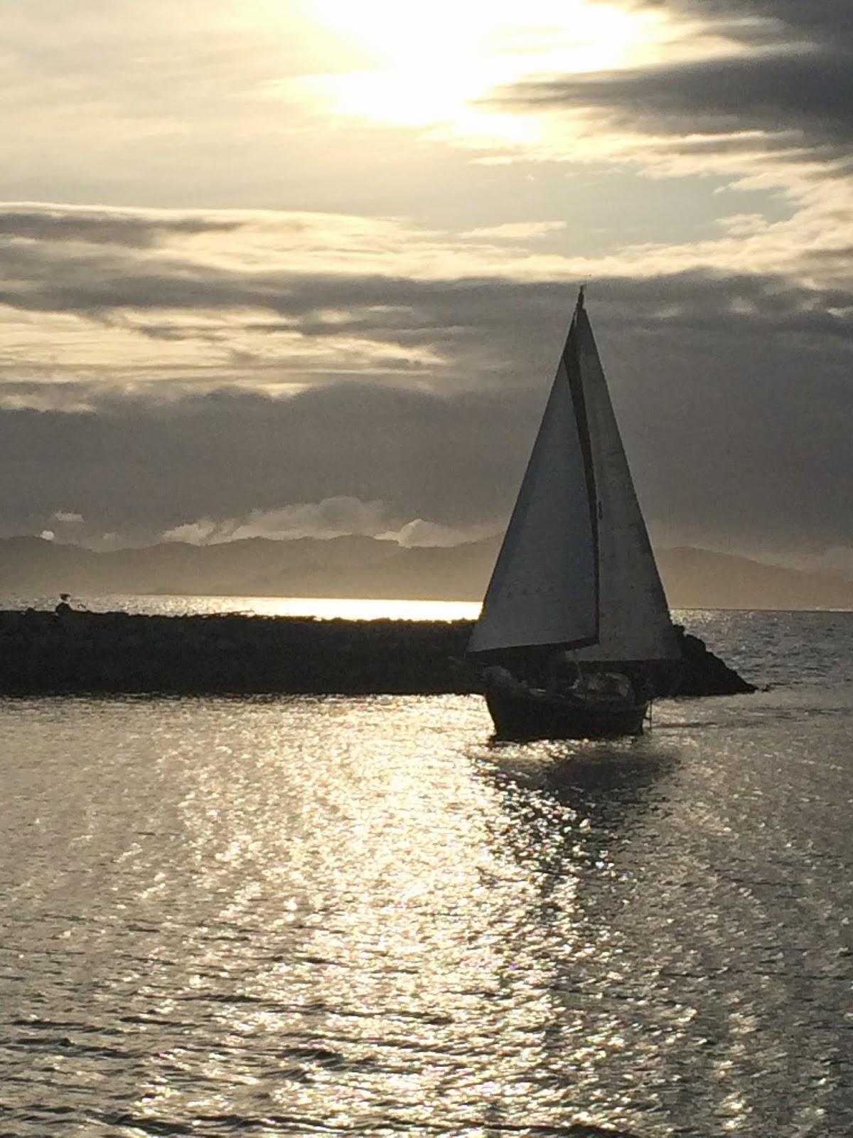 | Jon and Bob coming in at sunset on Bob’s west sail 32′ |