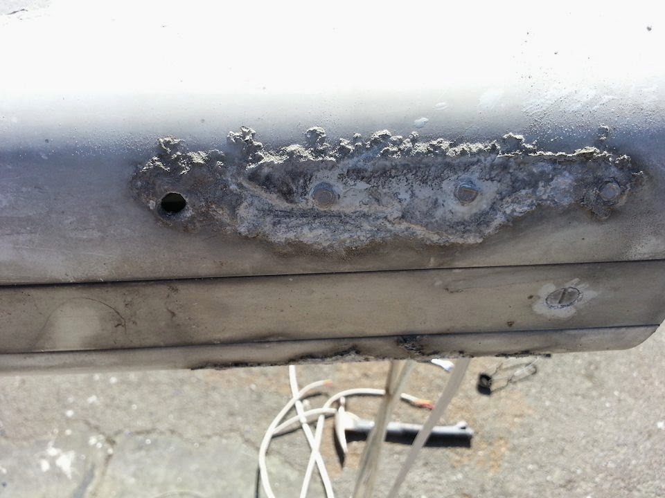 | Welding up a small crack on the mast head |