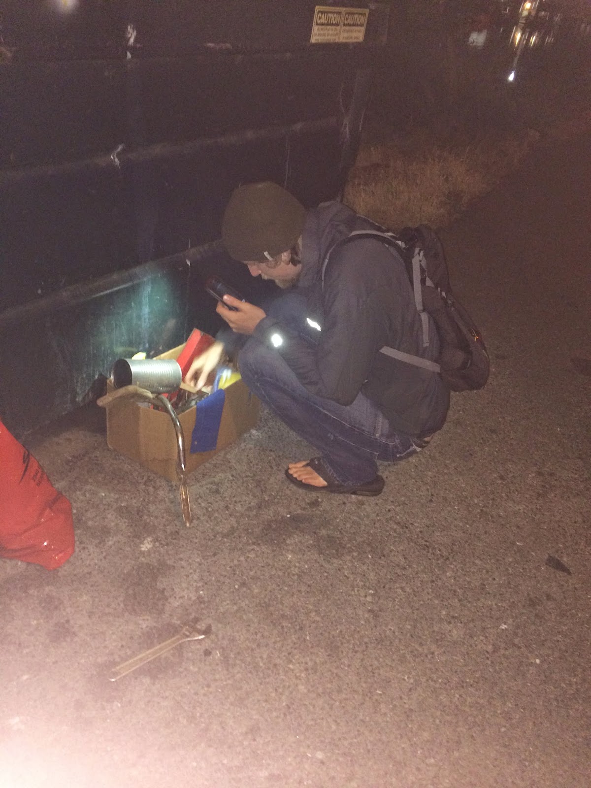 | Jon searching for “treasure” that people have left next to the dumpster |