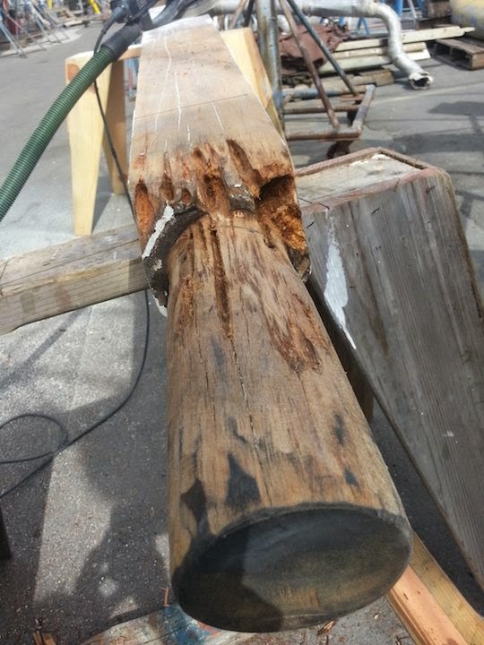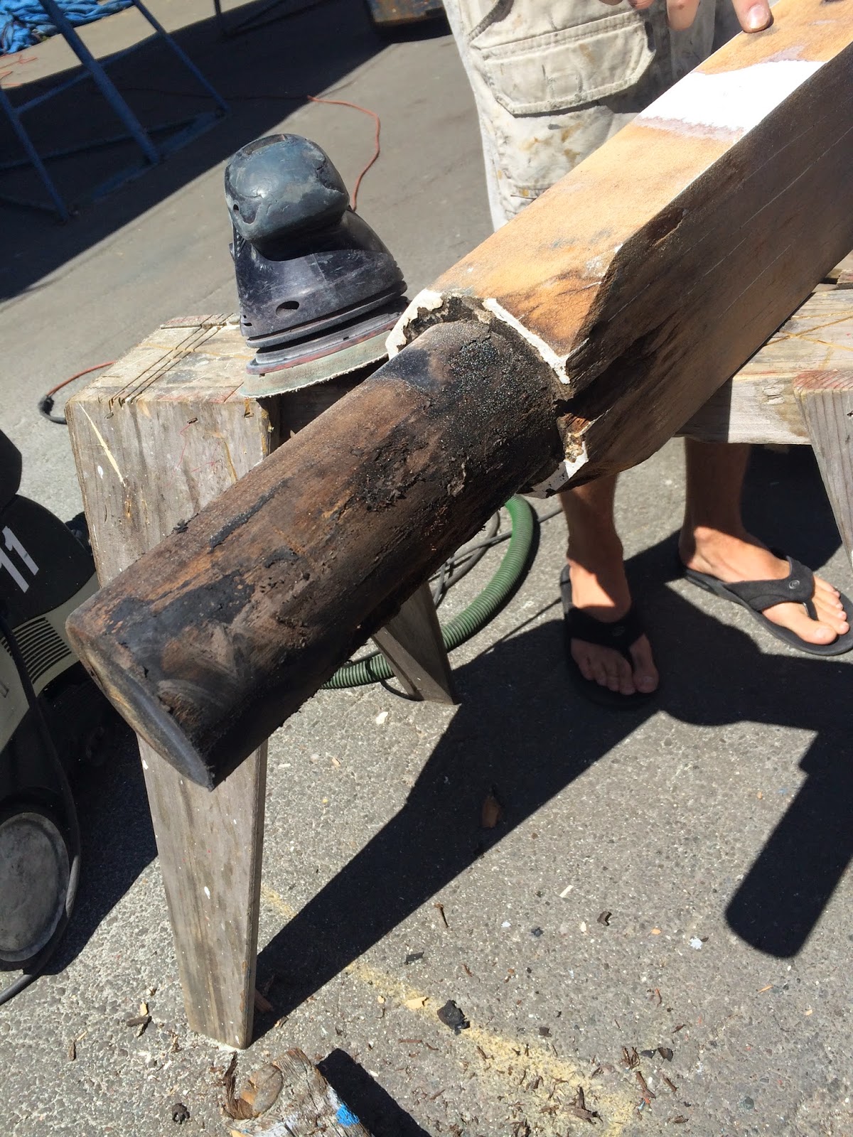 | Bowsprit down to bare wood |