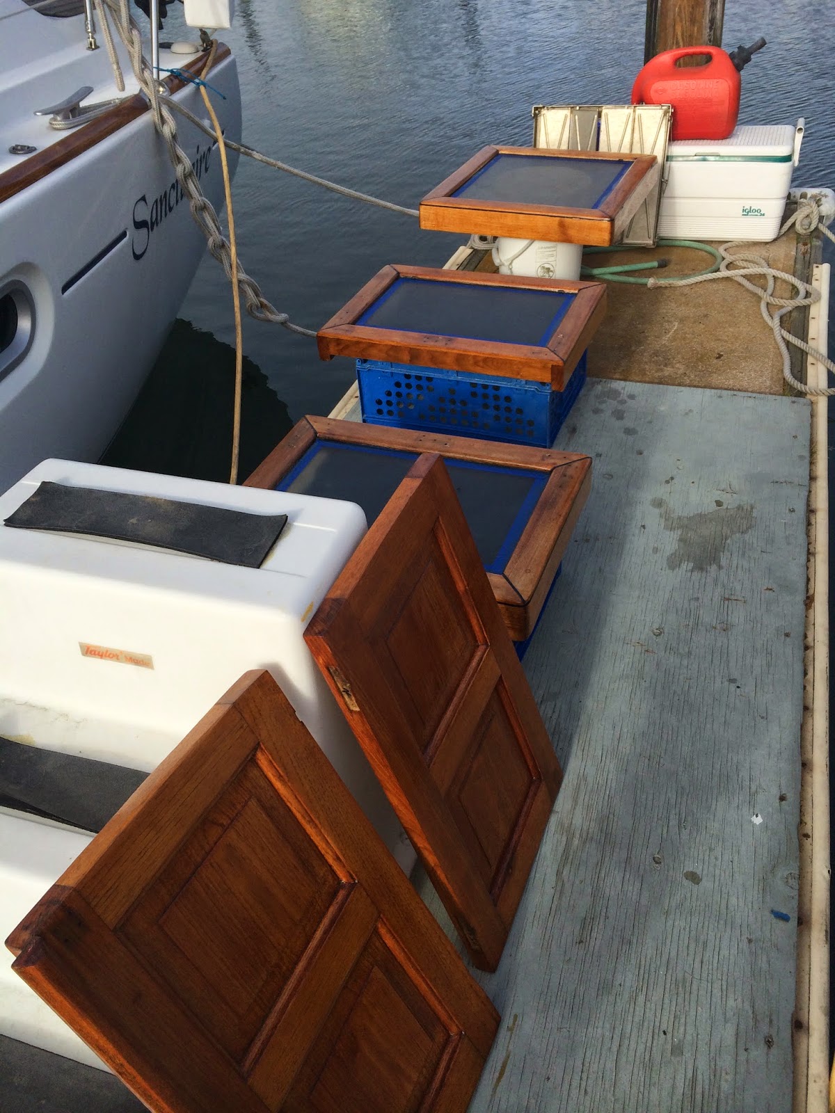 | Getting the hatches and doors all varnished |
