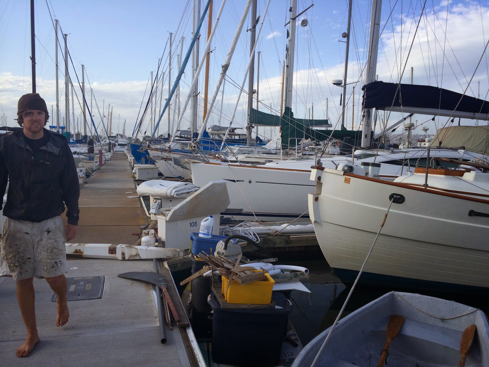 | Jon proud of all his work and getting the damn leak over the aft cabin door to stop! |