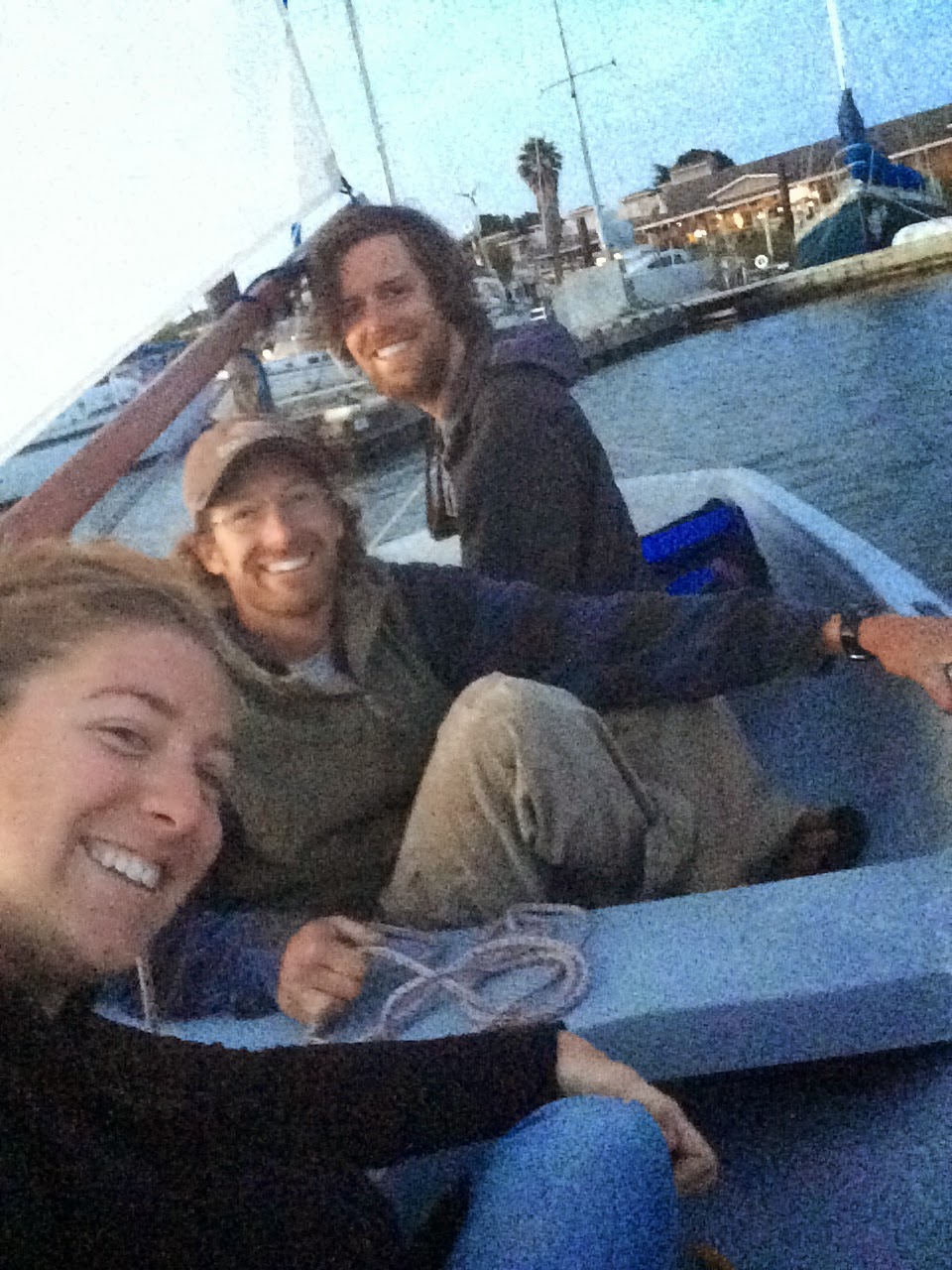 When we got back to the boat she was floating again on her water line. Jon and I rowed over and said hello and good bye to fellow sailors that were sailing toward warmer waters.. AKA south. Mom hailed us back and we set sail back for Berkeley as the family still had to drive to Santa Cruz to drop Marissa off and then back to Shaver Lake.