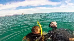 We were all going to hang on the beach for a little while and have a beer that Scott had brought over on his kayak. Making our way though the sandy surf we were talking about the stingrays and that we need to be doing the “Baja shuffle”. Just as we were taking about it and almost to the beach, WHAP Jon is down. He was the only one of the group who was wearing booties , sure enough the puncturing stinger of the ray sent Jon down to his knees with in seconds. Jon and I made a dash to the boat to get his foot clean and stop the venom. Good thing we didn’t waste any time. I had to rescue swim Jon back to the boat about 200 yards away as his leg started to cramp and he was in so much pain that I told him to just relax on his back and to keep breathing. We made it back to the boat, Jon quickly took off his gear, and rinsed his foot with fresh water as i got the medical guide to find out the correct ways to deal with this injury. Hot water is the key. We soaked Jon’s ankle in 110 degree fresh water for over an hour. Each time the water got below 100 degrees the pain would spike again. We hailed over a local fisherman and once again in broken spanish, we asked if he had any tips for dealing with this and if he had any antibiotics. He smiled and said he would be right back.