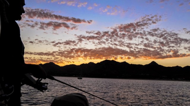The following day we made the decision to make a break for it. It was blowing about 10 knots, and no chop. We left the anchorage around 1pm, and planned on bypassing Muertos. That would get us to the Cerralvo Channel around 2 am, prefect with the tides. We started out, and of corse the wind is coming from the exact location we need to be going, so we short tacked making a very small distance between us and the anchorage, and by sunset the wind had died completely. We fired up the engine and B lined it. Jon took the first watch, I took the 2nd and navigated though the channel, then Sean took the last. Jon was back up and then me around 9:30 am as we reached the Canal De San Lorenzo, which is the mouth/ opening into La Paz Bay. The passage was dead calm, zero wind. It was beautiful and very warm.