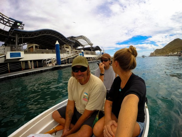 Our first priority was to get some food and then find a way to fill our propane tank. We piled into the dink and slowly made our way into the marina, where we were a huge source of entertainment for all the “glass bottom” panga boats, charter yachts and fishing boats filled with locals and vacationers. I am pretty sure we will end up in quite a few scrapbooks of peoples vacations. Everyone would stop, point, smile or laugh as we would get swamped by the wakes left by boats coming and going. It wasn’t till Jen from “Summer” snapped a picture of us and showed us why everyone was so entertained, that we finally understood.