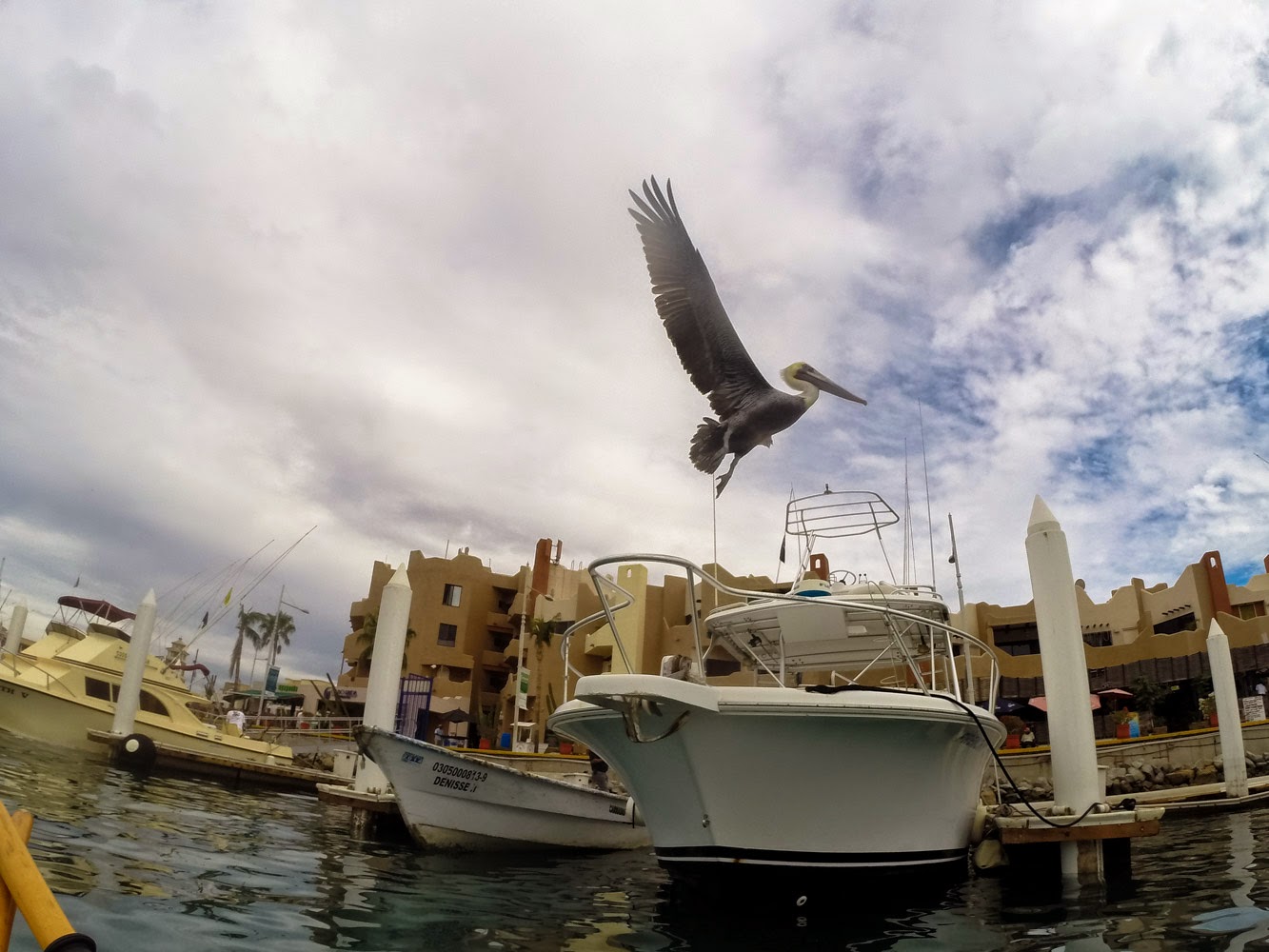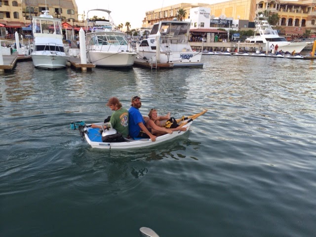 Our first priority was to get some food and then find a way to fill our propane tank. We piled into the dink and slowly made our way into the marina, where we were a huge source of entertainment for all the “glass bottom” panga boats, charter yachts and fishing boats filled with locals and vacationers. I am pretty sure we will end up in quite a few scrapbooks of peoples vacations. Everyone would stop, point, smile or laugh as we would get swamped by the wakes left by boats coming and going. It wasn’t till Jen from “Summer” snapped a picture of us and showed us why everyone was so entertained, that we finally understood.