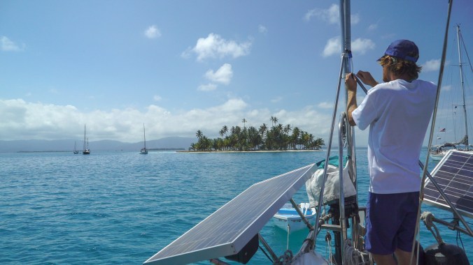 We are getting used to reading the coloring of the water and the tight reef cuts to get into the anchorages. We have even been able to med more/ bohemian tie to the beach at Isla Cambombia ( Morbedup). It’s weird to be anchored so close to the beach and still be in 20 feet of water. To jump head first off the boat into the water, swim for about 6 seconds then be walking in shallow water is crazy! And so beautiful!