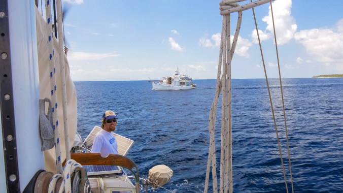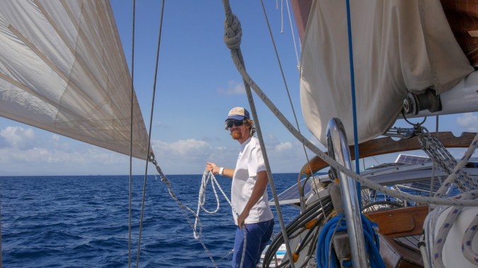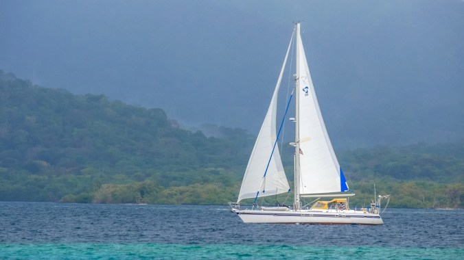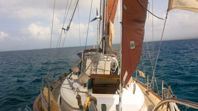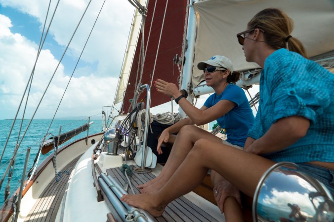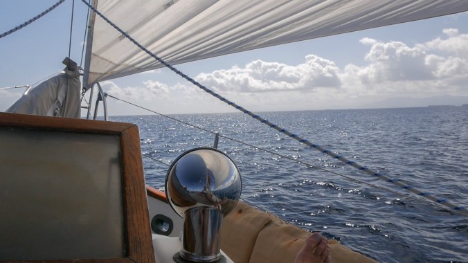 The sailing between the islands is very enjoyable. There are days that it’s very light and we get to bring out the drifter or spinnaker, but most days it is trade wind sailing but in protected waters. Prism just screams along at hull speed!