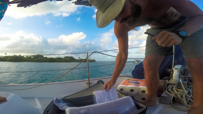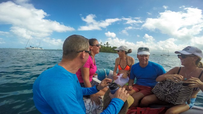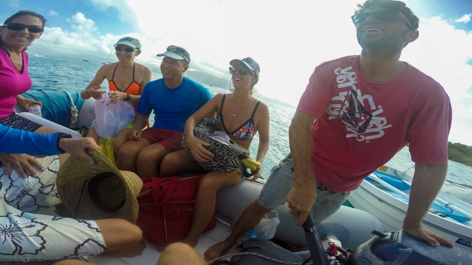 We have been spending a lot of time with SV Sundowner, you remember them, they also make youtube videos! We are having such a great time with these guys. They had some friends come and visit them, so we asked if their friends would be willing to bring down a few things for us, including the wind generator regulator which we needed to finished the install. Jon and I thought that this said regulator was going to be no more than 10 lbs and no bigger than a box of cereal. They said no problem, so we had it shipped to their House and waited patiently for them to arrive. Well little did we know….. the regulator was so much larger than a cereal box that they had to pack and check another bag just to get it out here! Whoops. THANK YOU SO MUCH AGAIN DAN AND DONELL!!! So this wonderful couple brought down all our junk for us so that we could finish our project and also a few goodies that are always great from the states including a bag of beef jerky! Oh man do we miss red meat! Anyways… Sundowner’s guest stayed for about 10 days, it was great to get to know this couple and spend time with them, I hope we get to see them again someday.