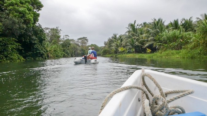 With the new to us outboard working like a champ, we took the opportunity to go up the Rio Diablo with SV Cheers. We made our way in through what the Caribbean calls “breakers” ( if only Caribbean cruisers knew about the pacific breakers) anyways, we make our way up to do some laundry and take unlimited fresh water showers. Little did we know the day was over cast, gloomy, cold and filled with bugs. But we went for it anyways.