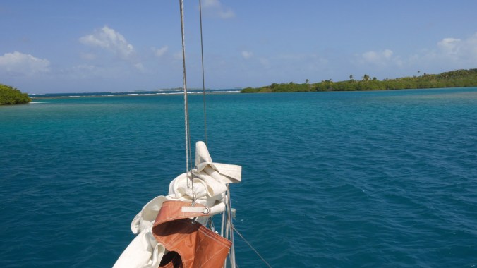 Sailing out of the “Swimming pool” in the Holandes Cays