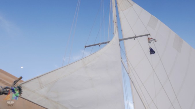 Jon was up first, he had zero traffic and no wind. Jet was up next and had the same conditions. She was enjoying the stars when she heard the sound a sailor never wants to hear. Even though there was no wind, we still had the main sail up to help stabilize the boat. When Jet heard the “rip” she pulled the sail in tight and rushed to get Jon as quick as she could. Jon jumped out of bed, rushed to the mast and tried to get the sail down before anymore damage was done. Little did he know that when he started to pull down he would in fact rip the rest of the panel off from the seams. I was sound asleep and didn’t hear the heart breaking sounds of our 35 year old main ripping apart but when Jet woke me and told me what happened I felt like I could hear the rip just from the look in her eyes. It’s a good thing we were almost there and had zero wind anyways.