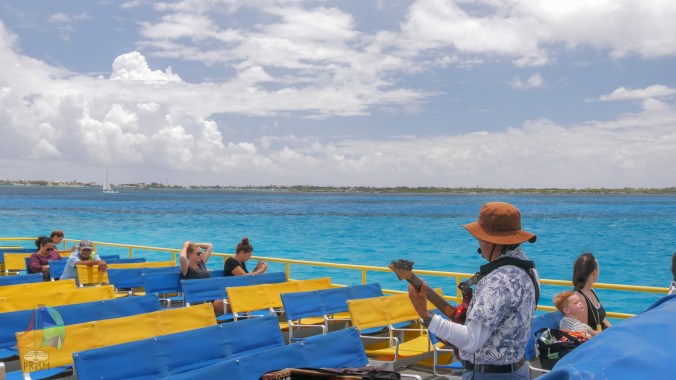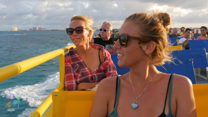 enjoying the ferry ride back from Cancun