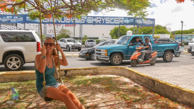 Shannon and Jet walking the streets in Cancun