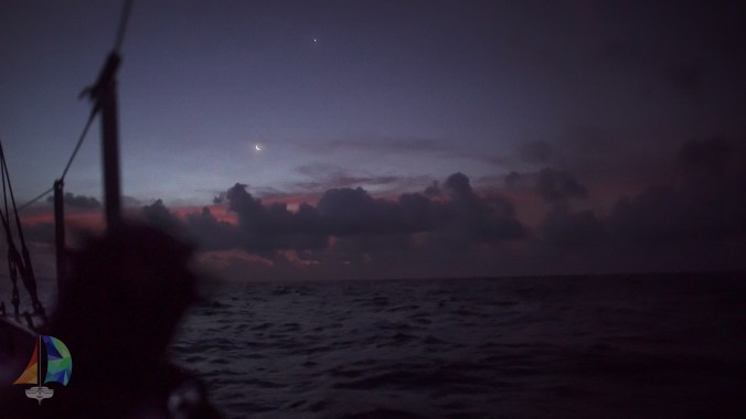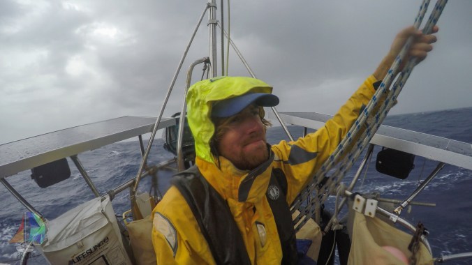Jon then stated ” Shannon it is only blowing 10 knots out here, that squall… if it hits us will probably only gust into the 30s, so we got this, but just for you, we will put another reef in the main.”