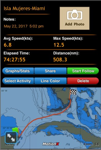 For 3 blissful days, we had perfect sailing conditions. We jumped into the Gulf Stream and seriously flew up and around Cuba. At times we were doing over 11 knots! Our average speed was 6.8 with a max speed of 12.5!!!