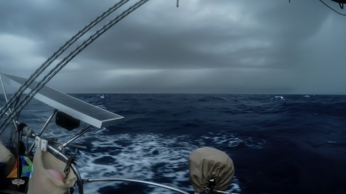 Anyway…….The stinging rain was blinding, but only lasted for another few minutes, till finally the winds backed down to the mid teens then nothing. The sky was still very ugly and dark and the sun was just about to set. We all sat in the cockpit allowing the adrenalin to leave our bodies, and once we caught our breaths we started to laugh.