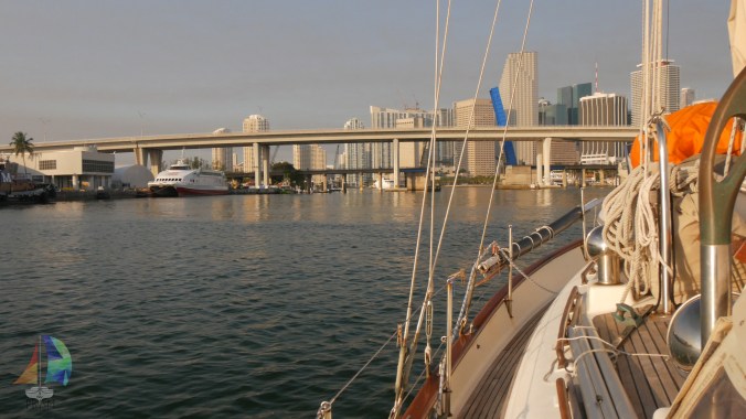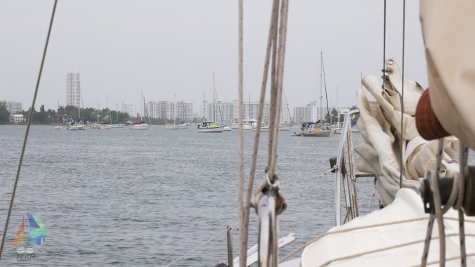 Once we only 5 miles out from the entrance of the Port of Miami, I could see that it was not only me who was excited about giving our voyage a small break. Luckily we did not have to share the class A inlet with any large ships, only a few other pleasure boats. We wound our way in through the waterways and under the bridges till we found our anchorage spot literally right behind South Beach in calm and shallow protected waters.