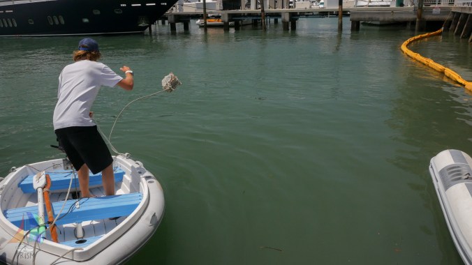 Jon returned about 2 hours later with quite the story. First he had a hard time finding the police dock, when he stopped to ask some locals he started of with ” Hey guys…where I am?” they responded with ” You’re in Miami man!” lol I wish I could have been there to see their faces. They seriously thought Jon had just made land fall after being out at sea in little ol’ Flakor. HA