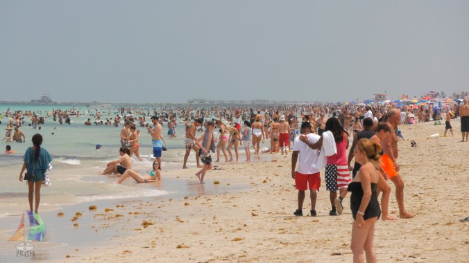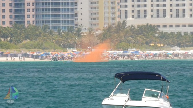 The next morning as we were enjoying our coffee on deck when a B2 stealth bomber flew at 500 feet above our heads. WHOA!!!!!!!!!!! After that blow by (as quickly as we can) we loaded up into the dinghy and found our way to south beach to watch the air show. HOLY CROWD OVERLOAD! The people watching in South Beach is like nothing I have ever seen, we could not believe the things we saw.