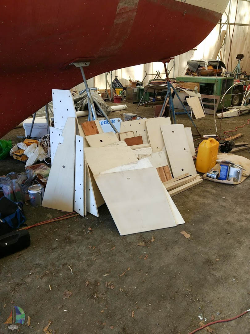 Our main issue now is that the weather is changing for the worse ( not that it is ever great in these parts of the world) and unlike you, we do not have a tent above Wahkuna. There is no marina in NI that offers this type of facilities. Only one marine has a wee crane, which could not handle our girl’s weight. So we have Wahkuna on a massive trailer, in a yard. We will have to work with what we have.
