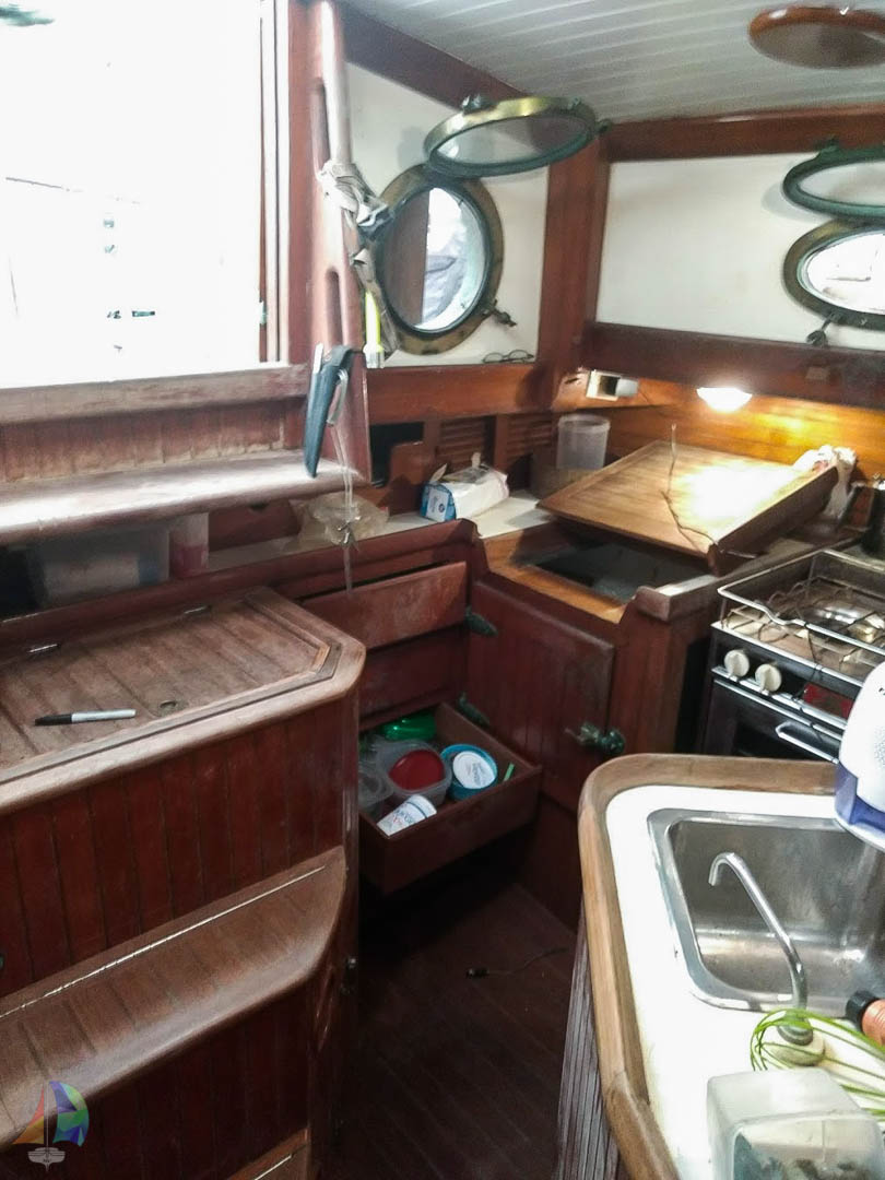 Jon also had taken the time to scarf in new teak pieces in the galley where during some point in Prism’s history someone took what looks like a hack saw to the teak trim to install god knows what. They have been eye sores since the day we bought Prism.
