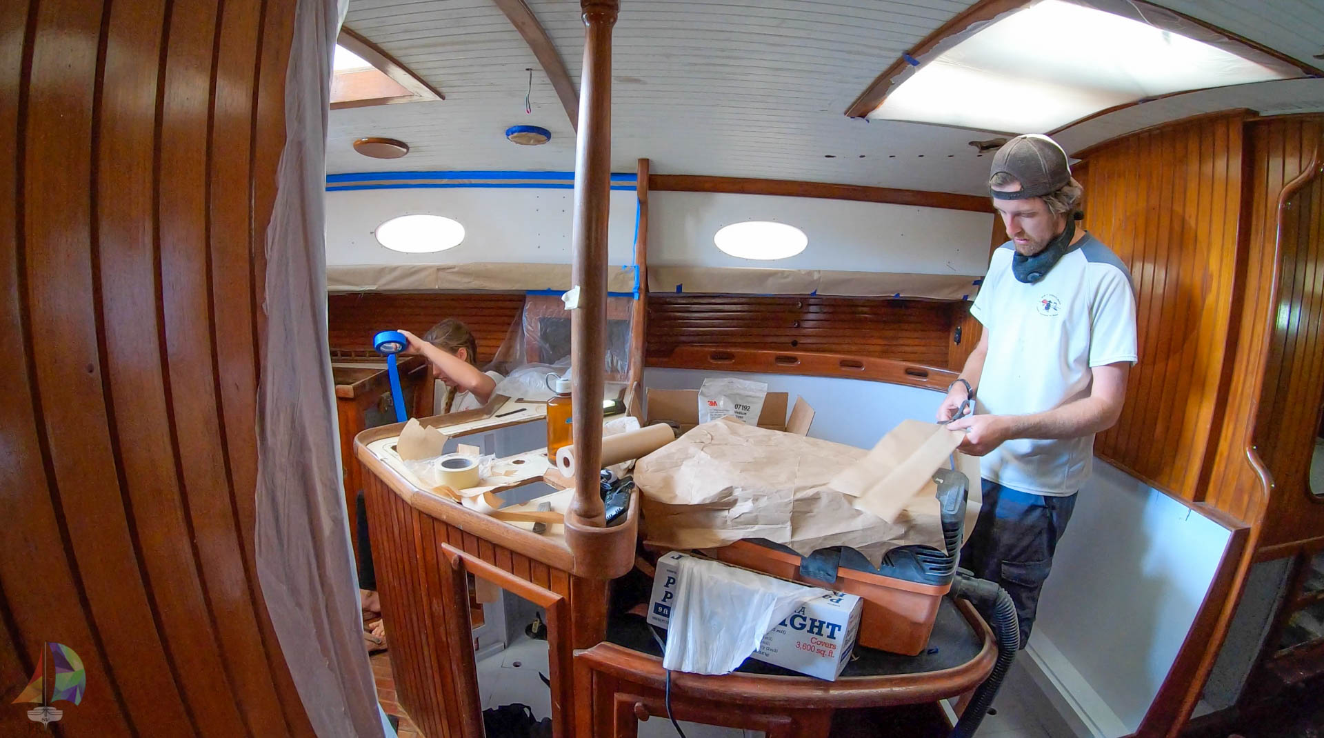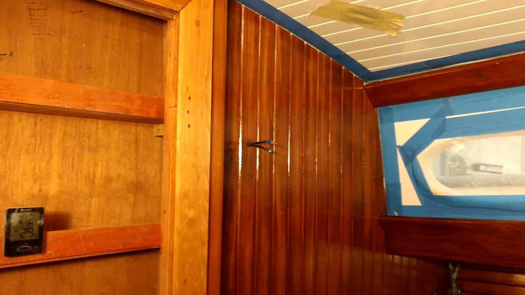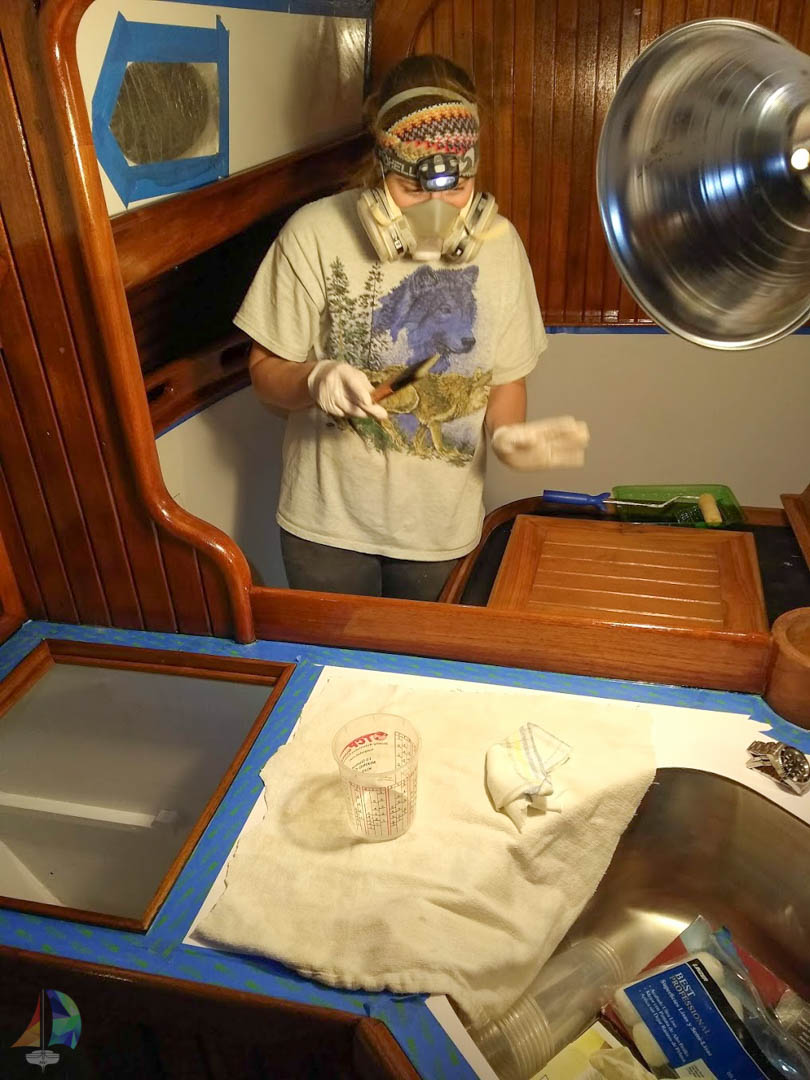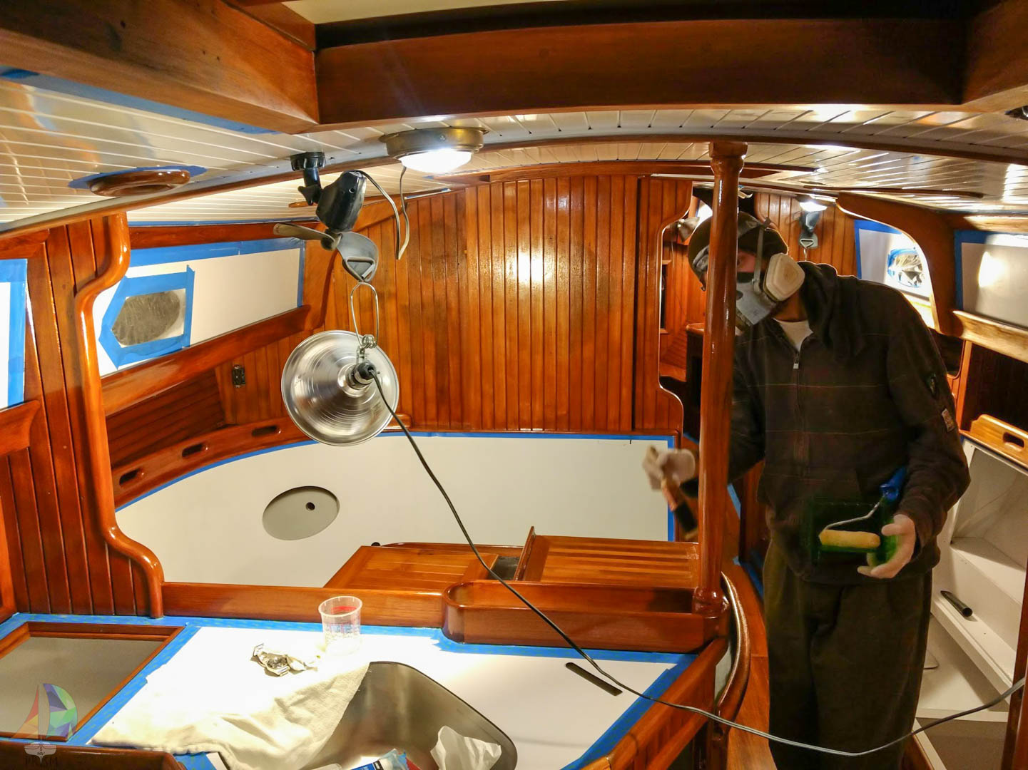 With everything filled and all the teak sanded to a beautiful blonde we were ready. First up was the pullman as we wanted it to have the most amount of time to cure so we could start sleeping in there.