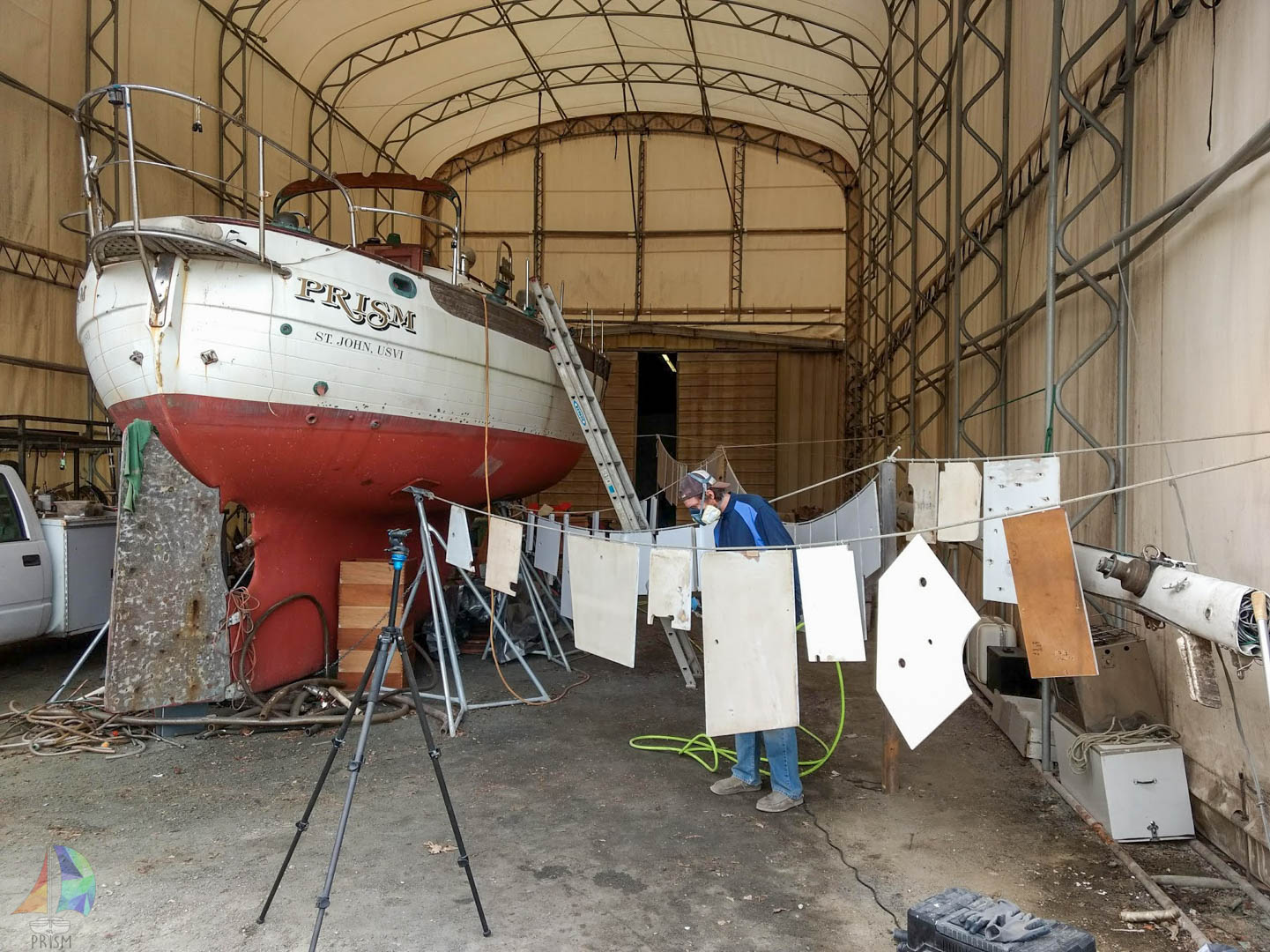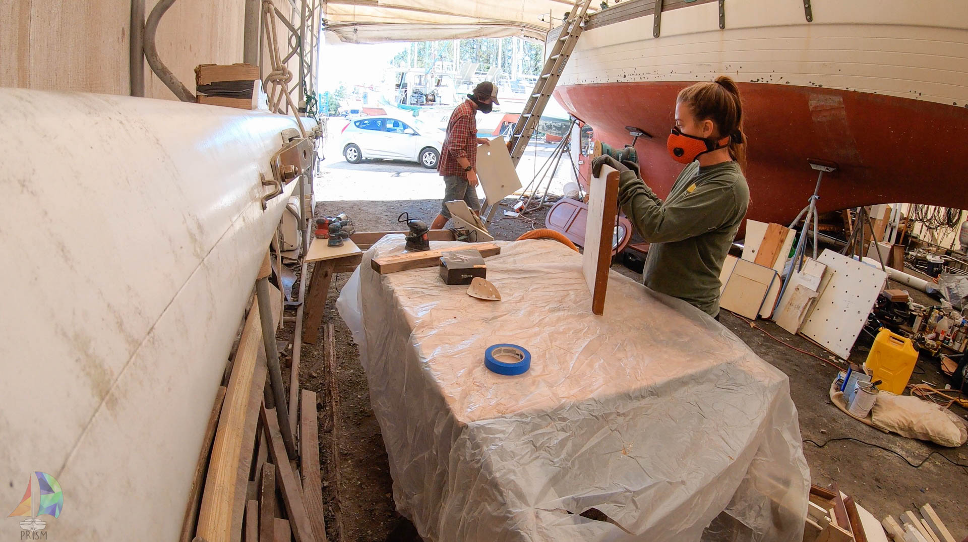 We finally made it back to Prism! Jon and I had been dreaming and thinking about this day sense we left her back in June of 2017. While we were home we came up with a list of things we wanted to do to Prism once we got back. For starters, the whole reason we sailed to Hurricane Boat Yard in Bayboro North Carolina was for their tent, in which we could use to spray new paint on Prism’s topsides, decks and cabin top. However over the months of thinking and dreaming our list grew longer and longer. So here are 2 list, one is what we planned on doing and the other is the list which keeps growing as we have a HUGE case of “might as well, while we’re at it”