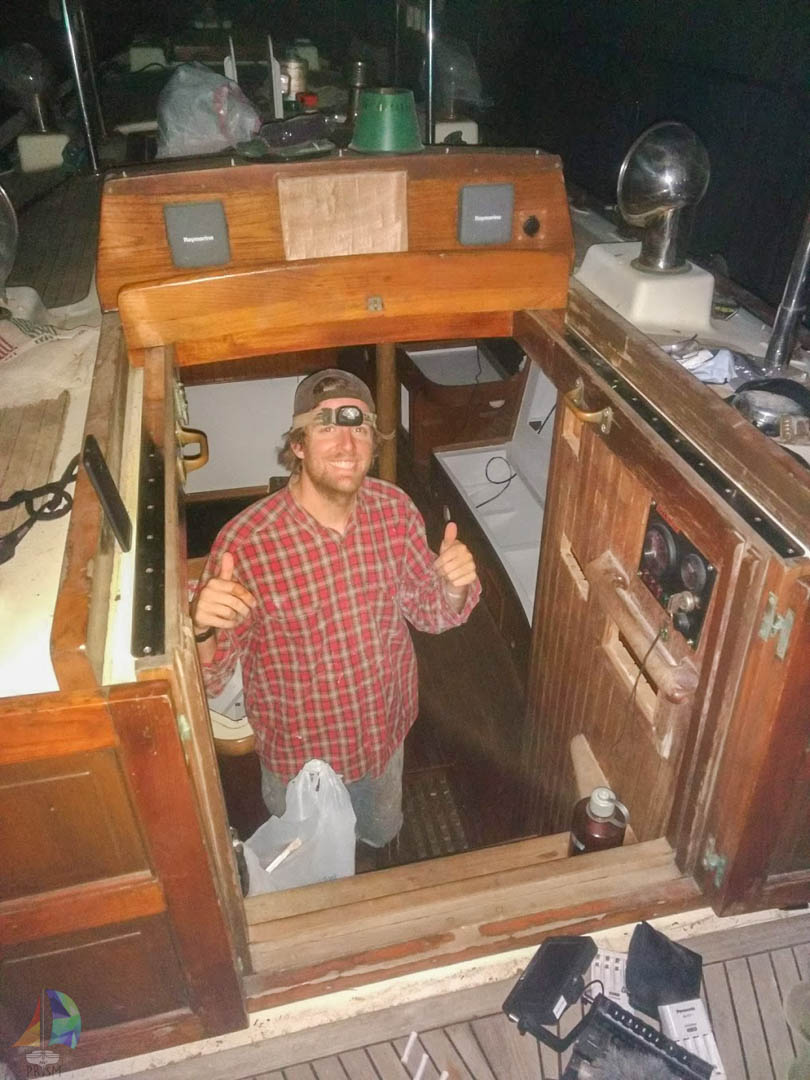On the inside I was getting closer and closer to having all of the varnish removed. Have I mentioned how much teak a HC33 has? It’s a lot. Stripping the varnish has taken so much longer than either of us thought and we are not even bothering with the aft cabin yet. (sorry guest)
