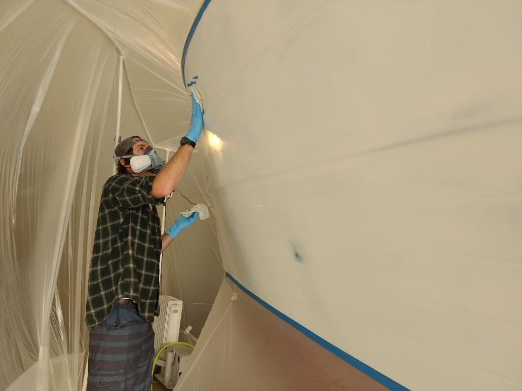 We thought we were ready, just a little more prep turned into anther full day of prep. Because of the time sensitivities of the product we had to make sure our applying and drying times lined up with working hours. Awlgrip wants you to apply the first coat of Awlwood gloss on top of the primer within 18 hours, 12 hours of which are drying.