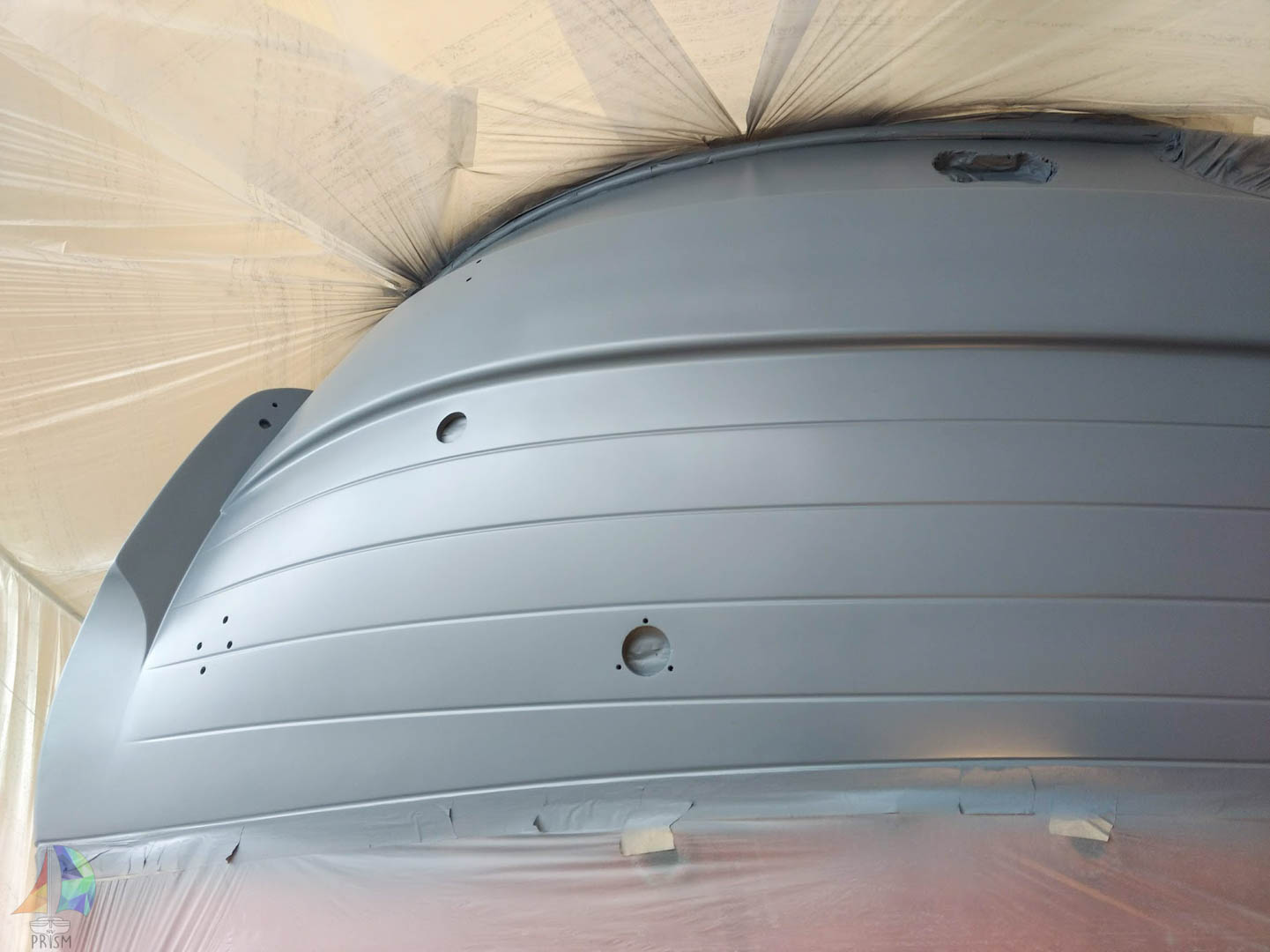 After sanding the runs and some orange peel patches smooth again we gave the entire surface a good tooth. Now we were ready to vacuum, wipe and re-drape the plastic bubble.