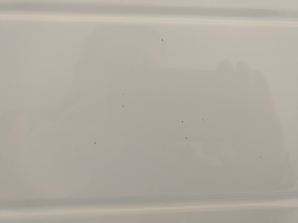 After getting almost no sleep as we were pretty upset with ourselves about the runs, we headed back to Prism in the morning to take a closer look at our mistakes. Upon further inspection, not only did we have runs, but we also had what looked like fish eyes. Fish eyes are normally a result of a chemical imbalance, dirty paint, dirty air, or not allowing enough time for the solvents to evaporate before laying down the paint. Jon and I were so confused as we did everything by the book. We called BMC and sent them photos looking for advice from Julio, the spray master. He said from the photos it looked like fish eyes. Jon and I could not think of anything that would have caused these damn little holes to call our topside paint home. NO, we did not do any of the things that cause the standard fish eyes. So we called Awlgrip, and explained our step by step process the day before and what theses little monsters looked like. They agreed, it didn’t sound like fish eyes. Still they said we should sand it all back down and start over. Wait, WHAT?!?!