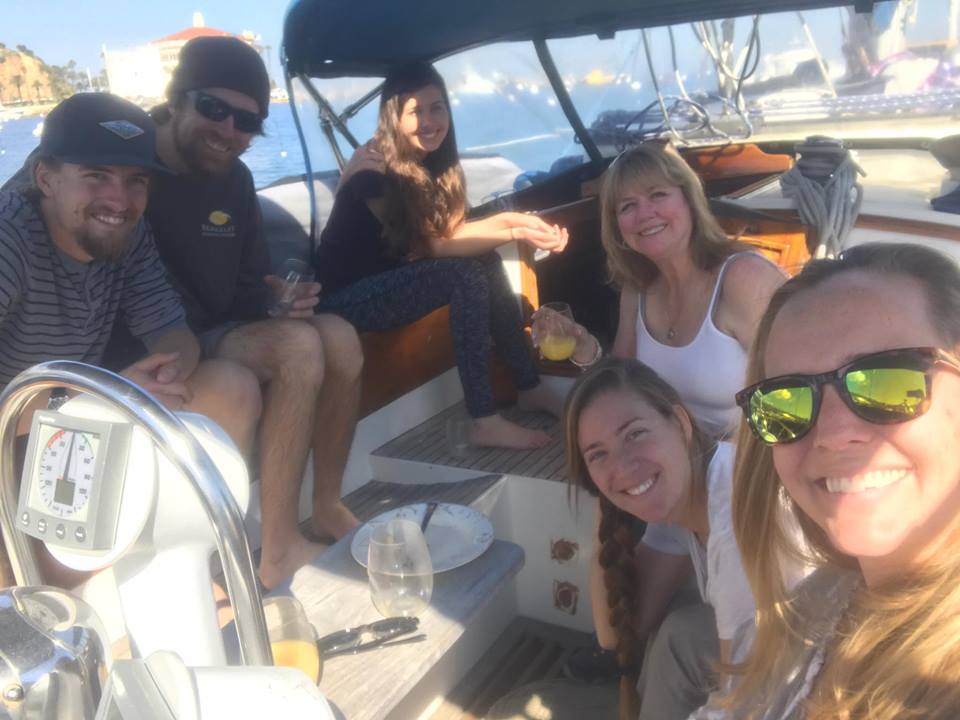 As we pulled in closer to the Harbor it was hard not to jump up, get on the VHF and call harbor patrol, I had to keep reminding myself that we were not the ones in charge of this vessel, talk about a hard habit to break. Chris and Marissa did their thing and had us checked in for the next few days, next mission was grabbing the mooring ball. If you have never been to Catalina Island I’m sure the mooring system can be a bit confusing, but growing up here I knew all about them and have done it more times than I can remember. Jon and I walked Chris and Marissa though the process. Chris was at the helm with Jon offering advise, while Marissa and I were at the bow. Chris brought us up to the mooring ball float with the help of the wind, I grabbed the bobber and then told Marissa what to do. Not going to lie, I knew how fast you had to run the spreader line to the back of the boat and I got a kick out of watching Marissa make the mistake I did so many times growing up, taking to long. Luckily she is a strong woman and was able to hold on to the line and bring Avocet’s ass end back around. She secured the lines and we were there! Time for breakfast and mimosas!