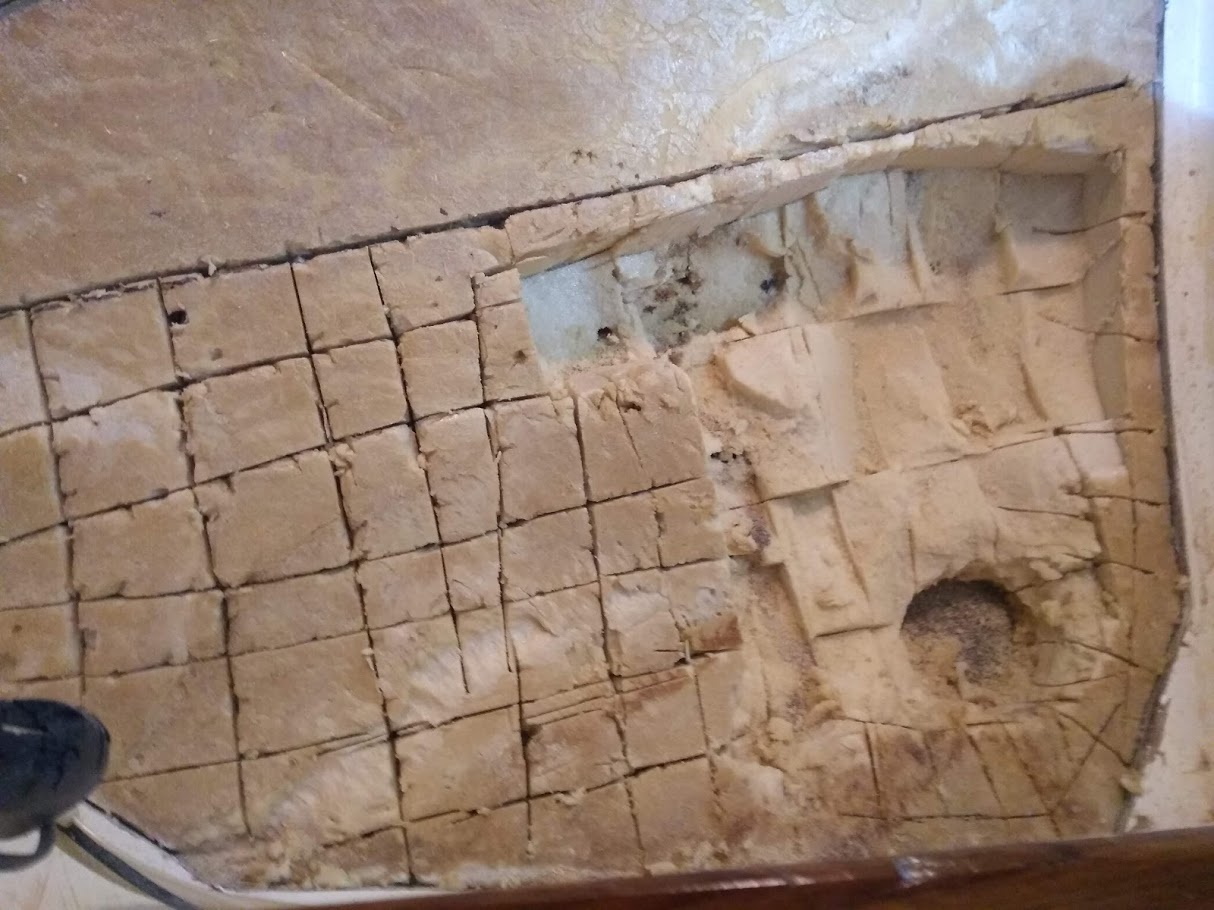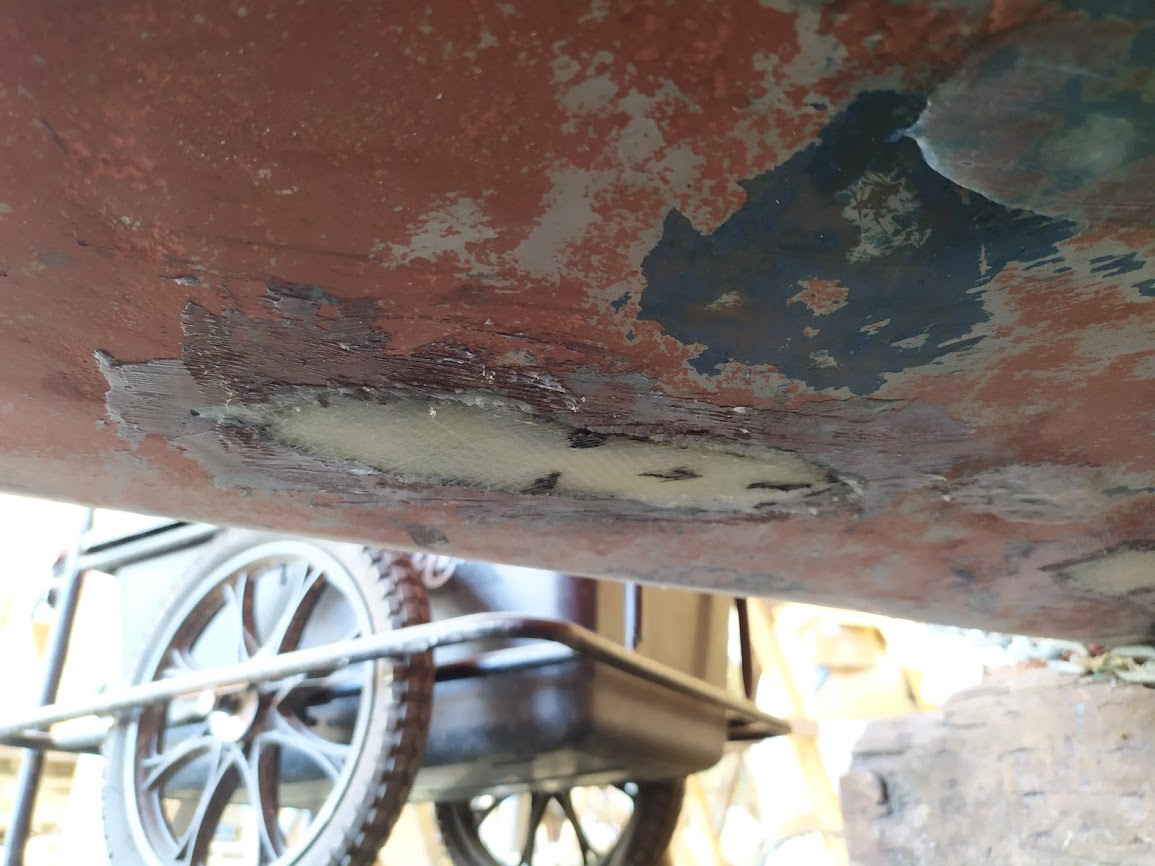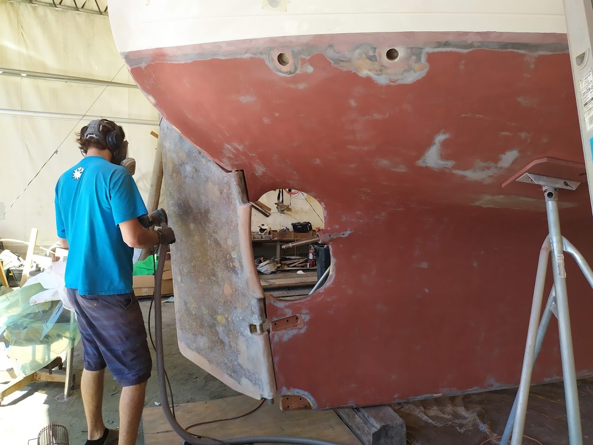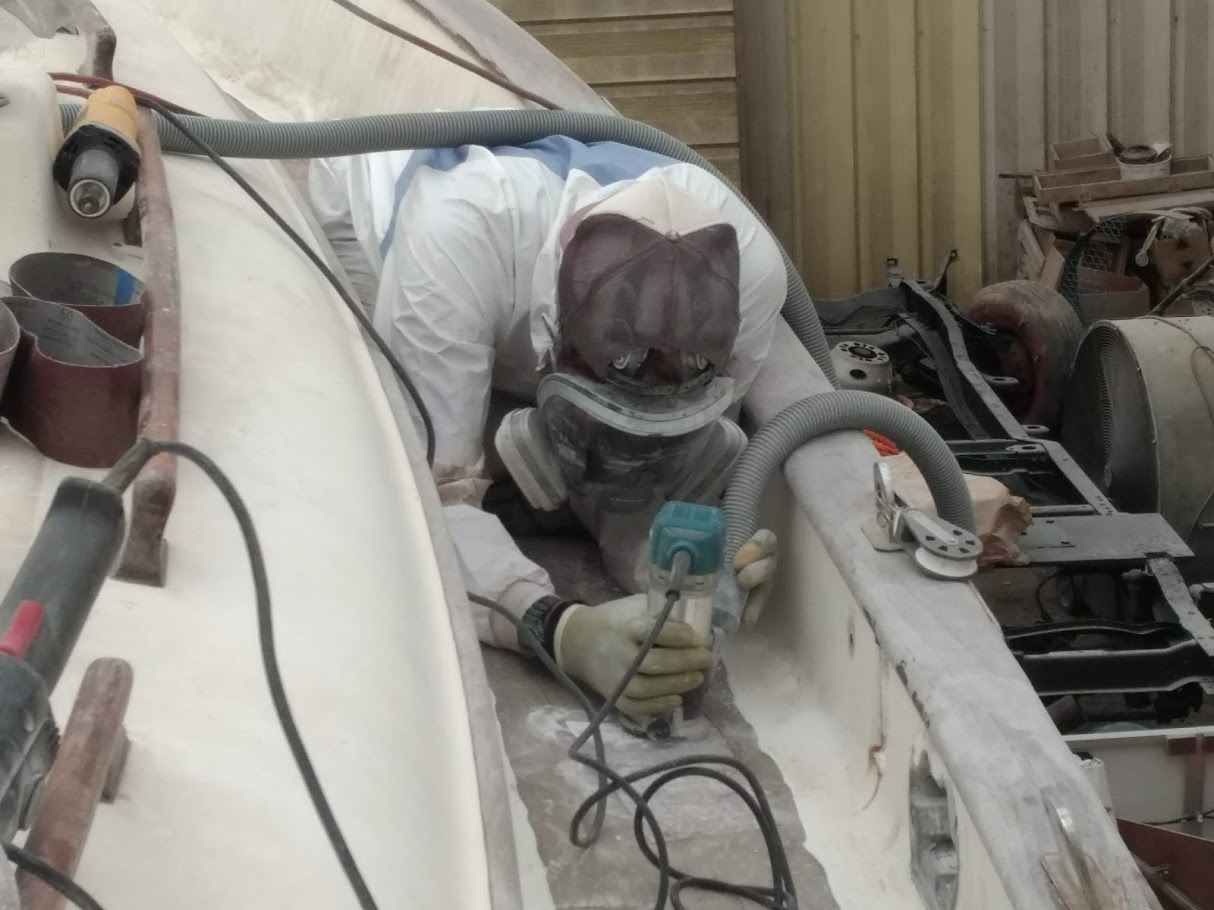 Removing the delaminated glass under the mast step