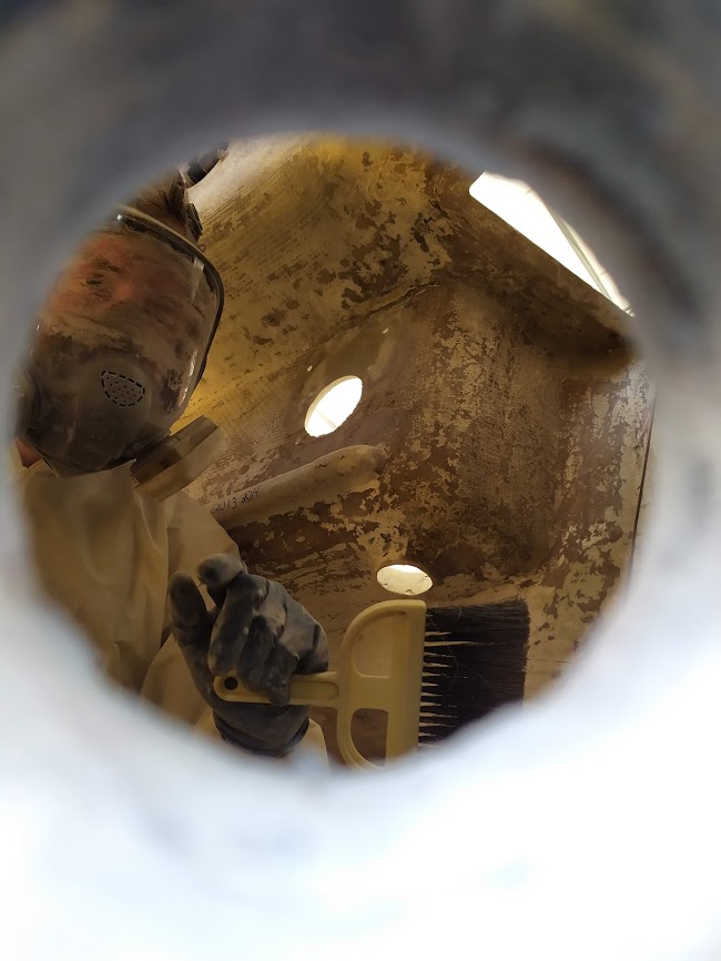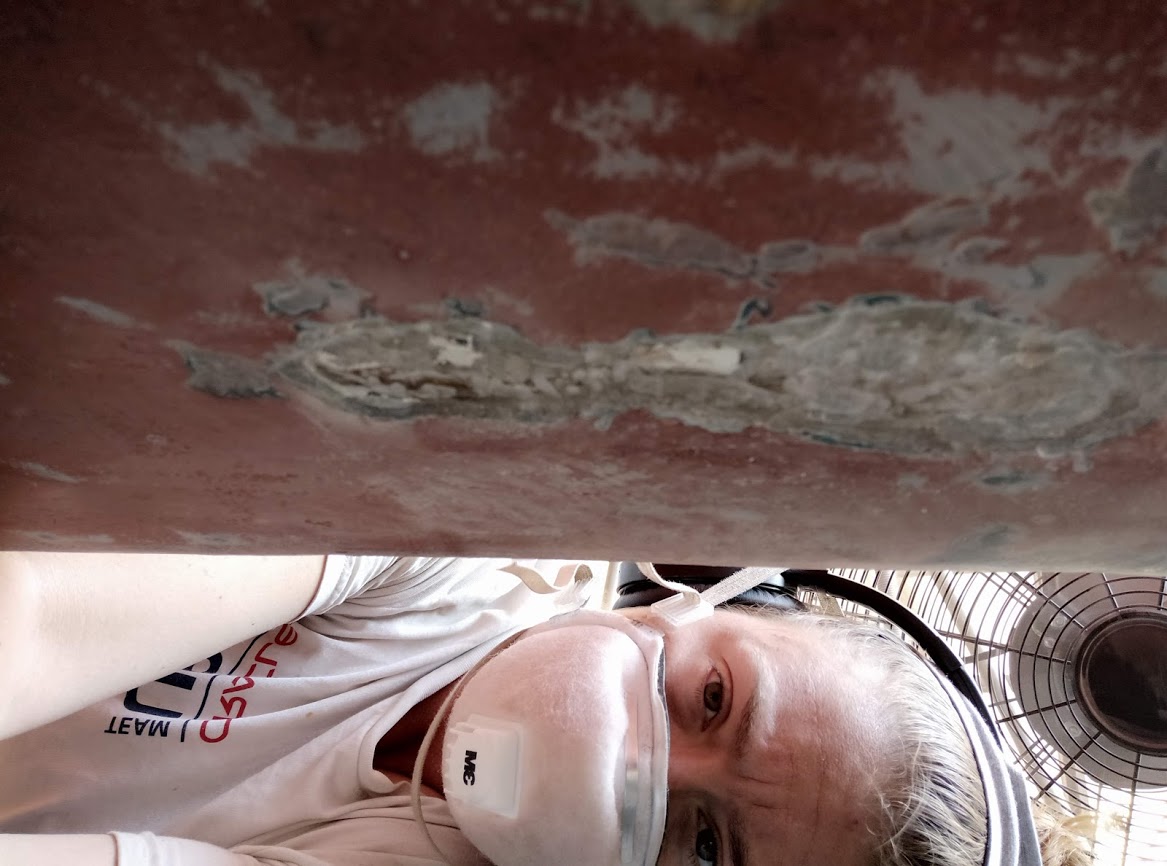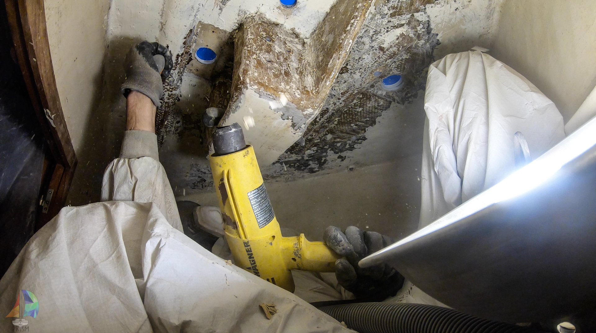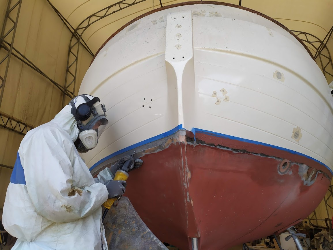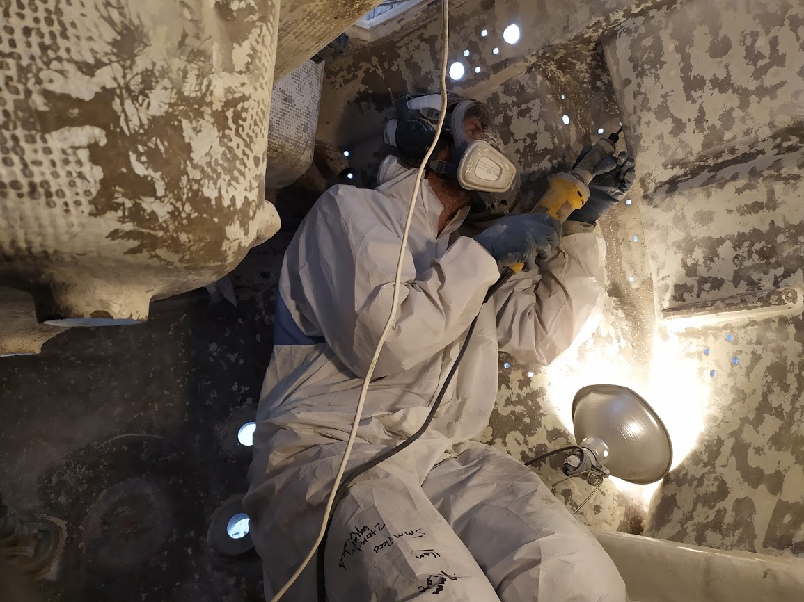Removing the delaminated glass under the mast step