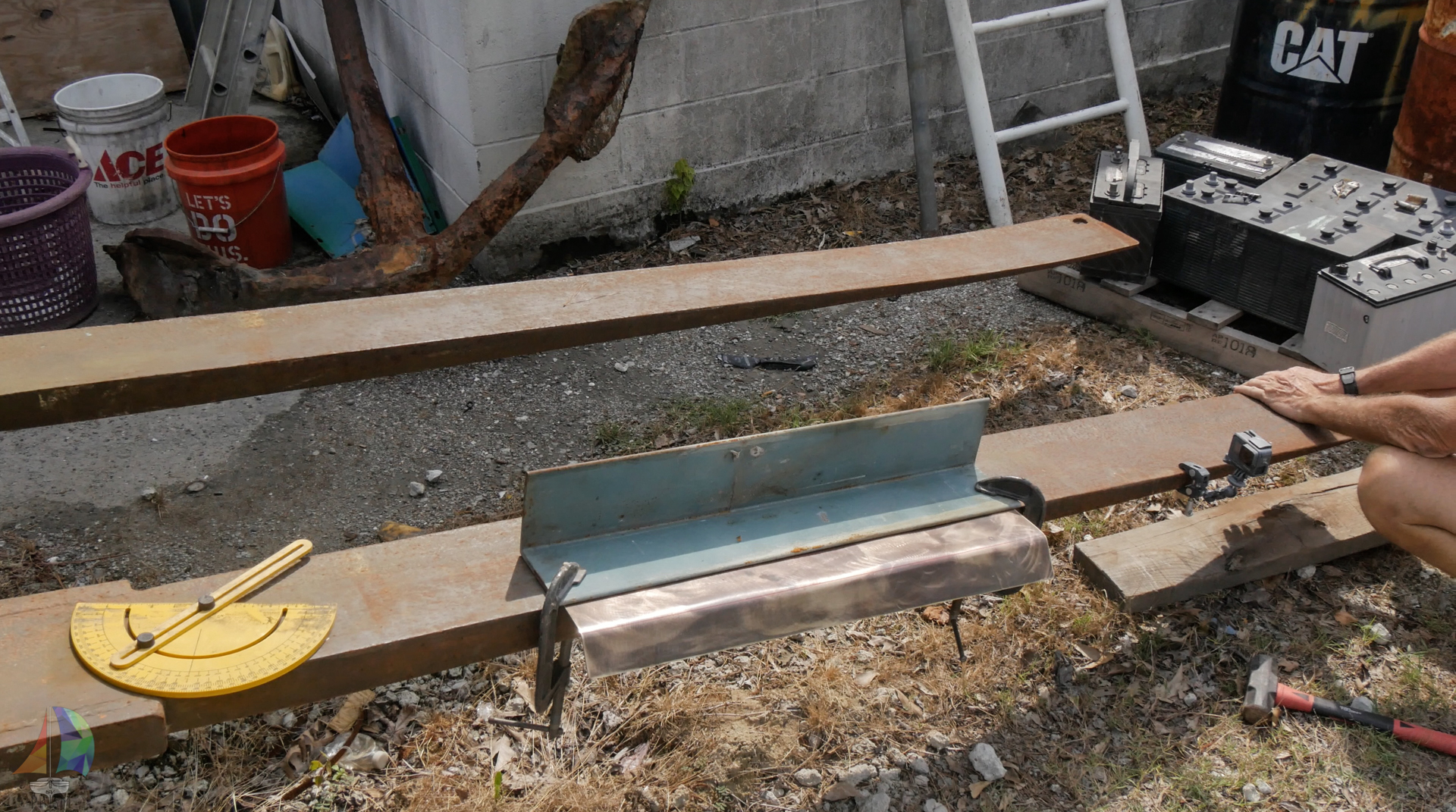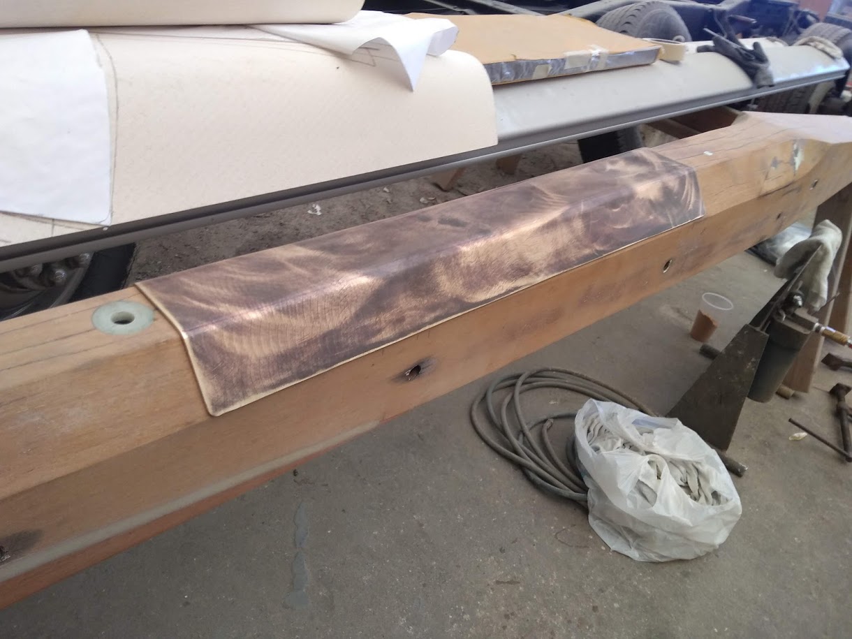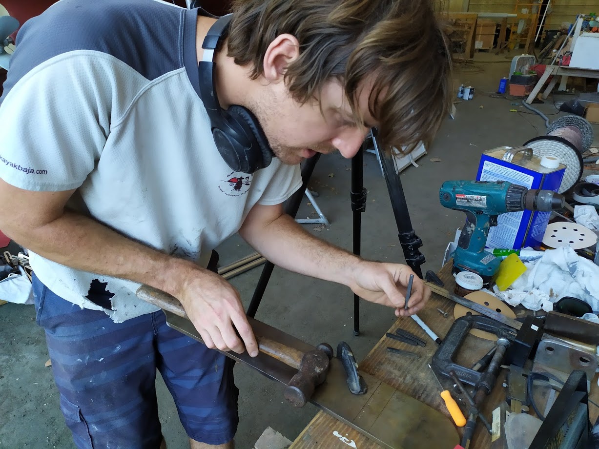 bending the bronze strike plate to fit our bowsprit