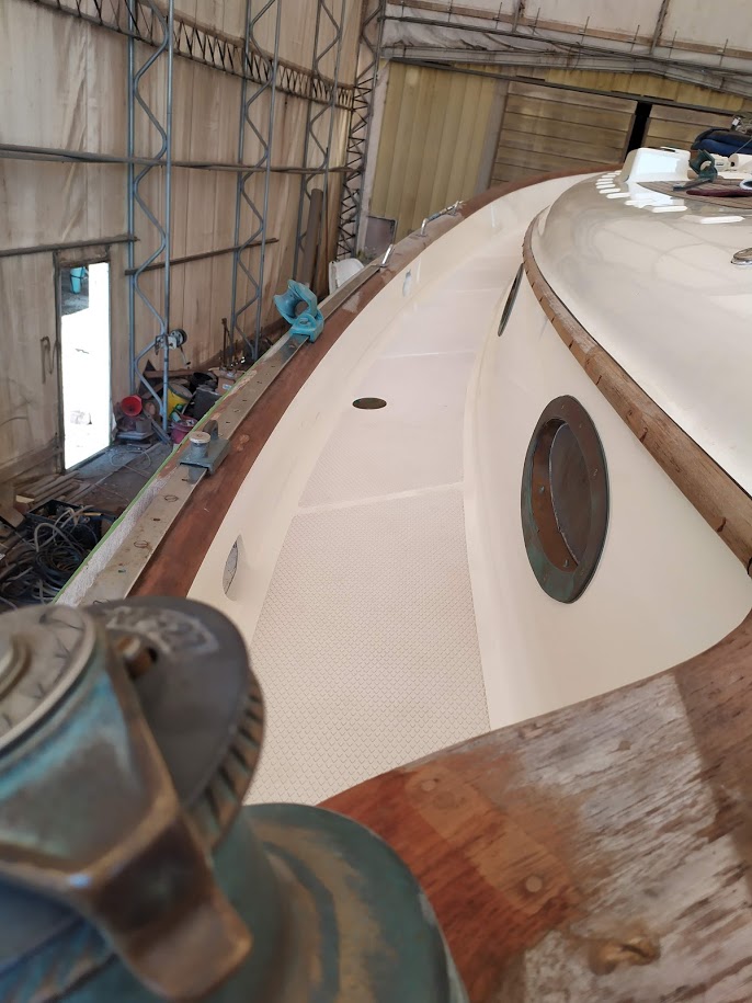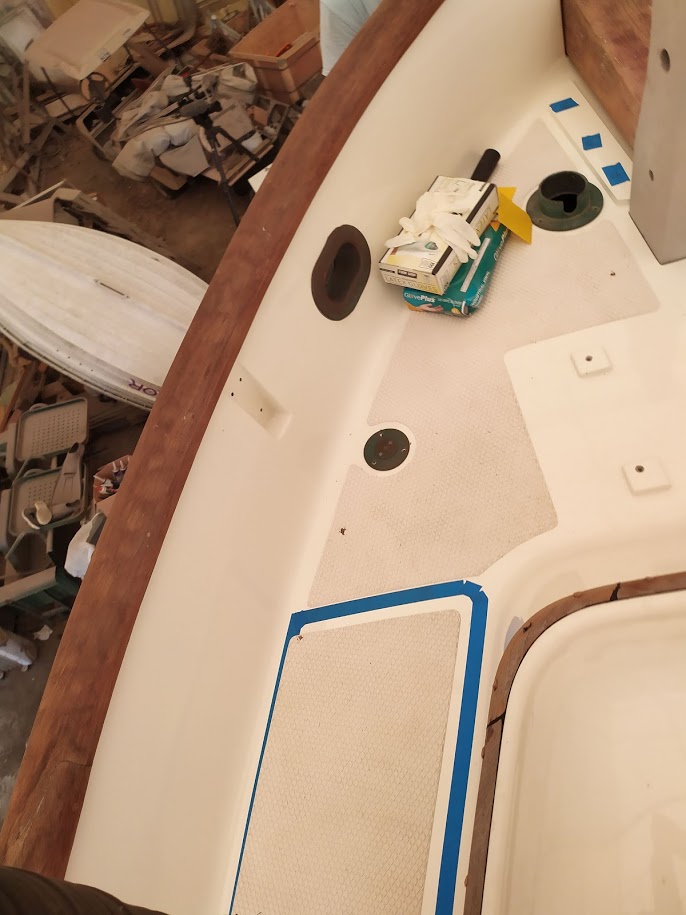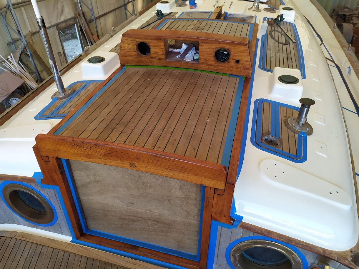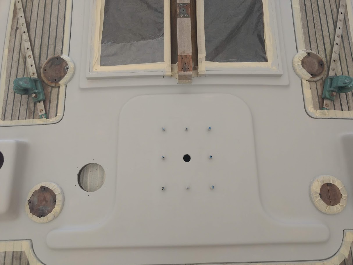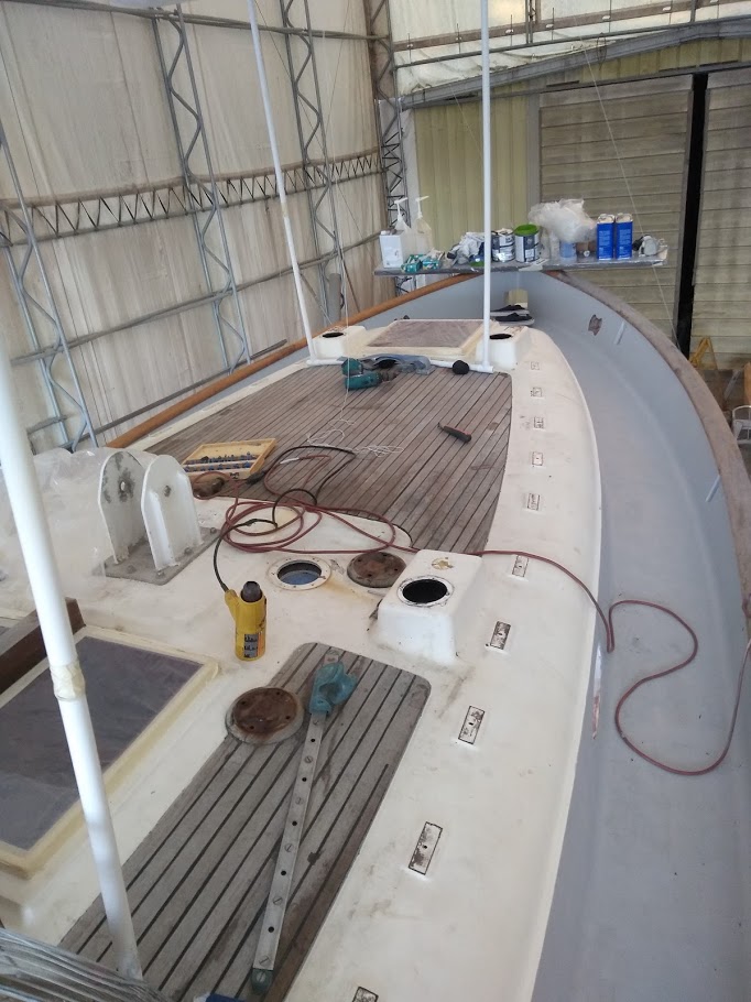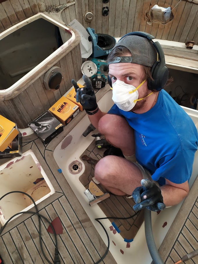 The decks are what started this entire refit in the first place. On our way back to the states back in 2017, Jon decided that the teak decks had to go. So once we pulled into NC and with wonderful help from Jet, we removed the teak and filled the holes before we headed back to California for weddings and work.