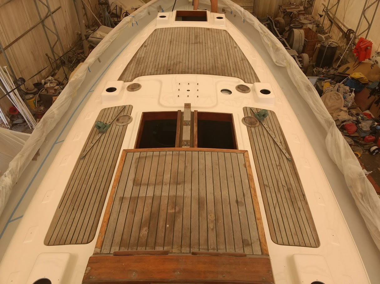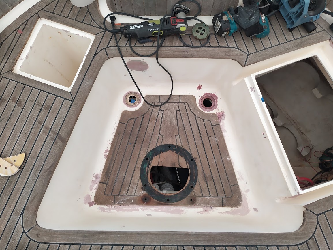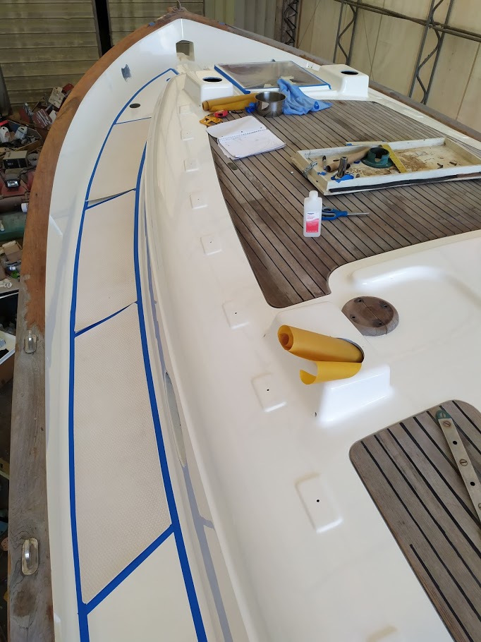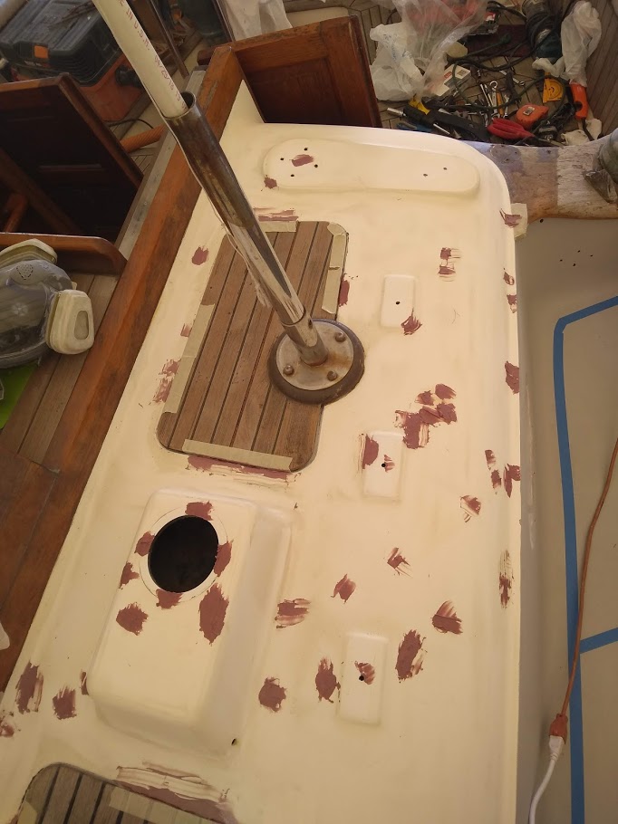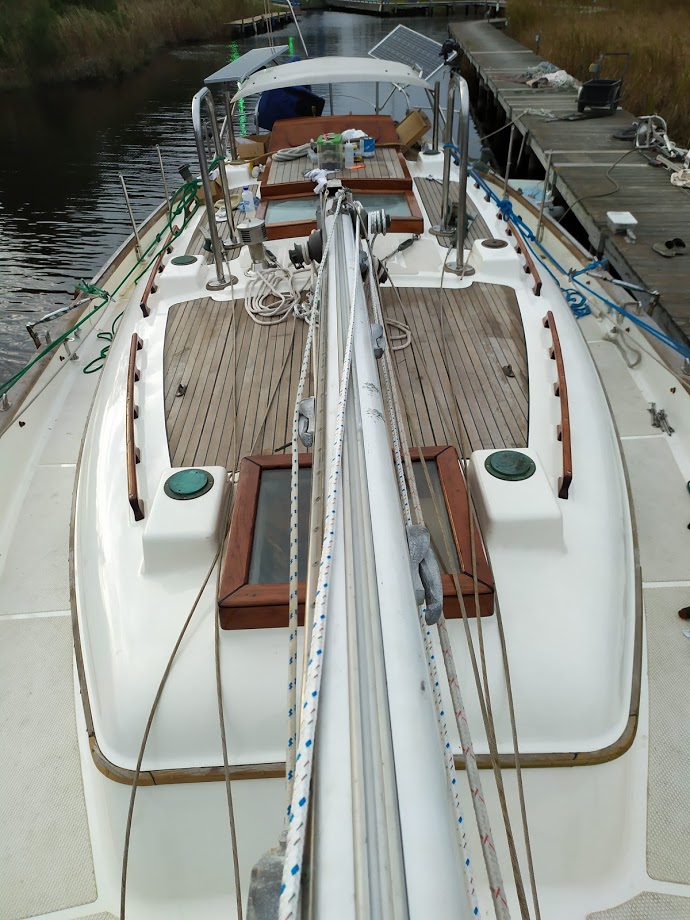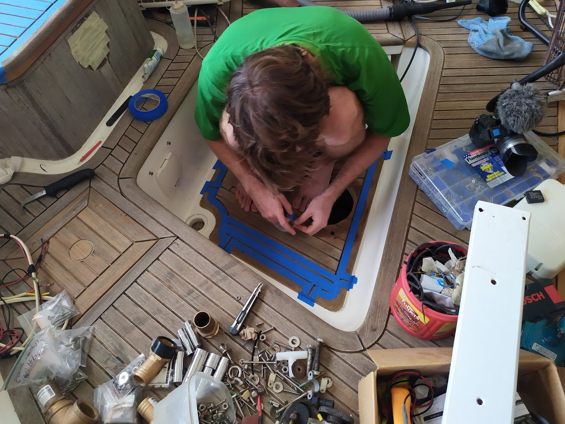 The decks are what started this entire refit in the first place. On our way back to the states back in 2017, Jon decided that the teak decks had to go. So once we pulled into NC and with wonderful help from Jet, we removed the teak and filled the holes before we headed back to California for weddings and work.