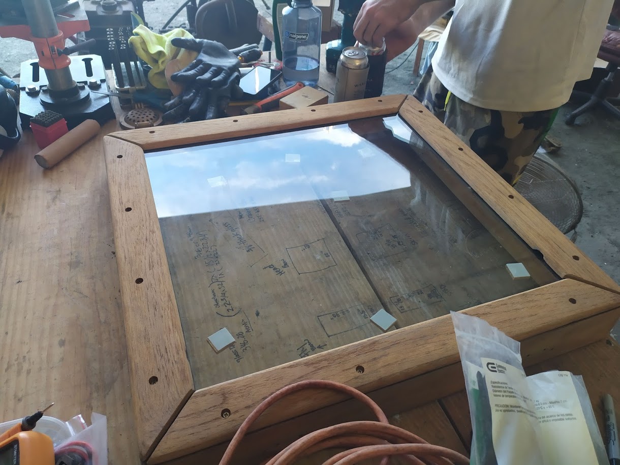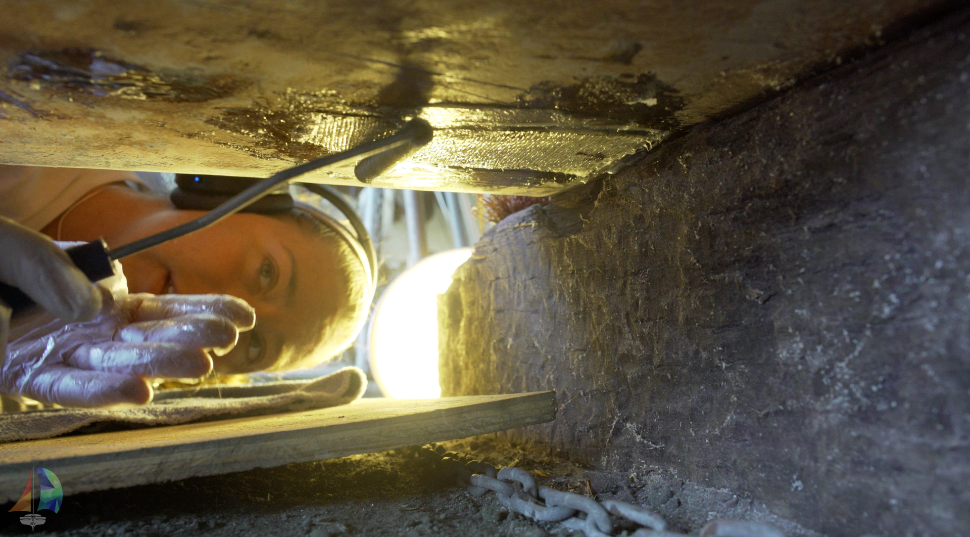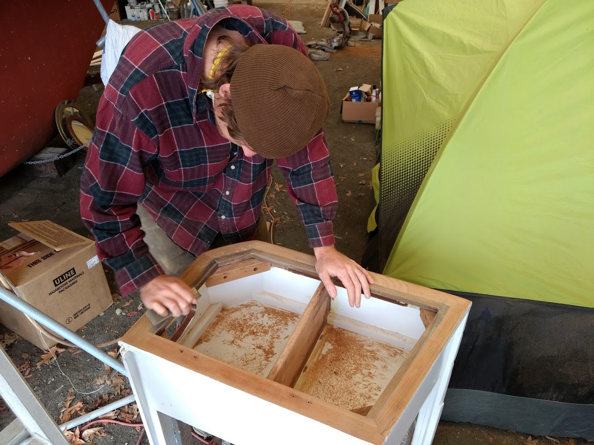 While we are applying the varnish in the bubble, we have to keep in mind that the temperatures are very low, so we had to use all the tricks in the book in order for it to dry happily. And because of the temps, the varnish took a little longer than normal to dry, so we would stay busy with installing hardware back inside the boat like hinges and what not.