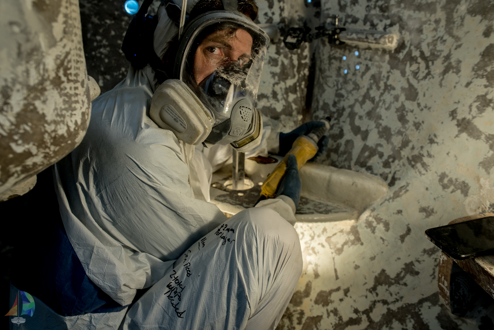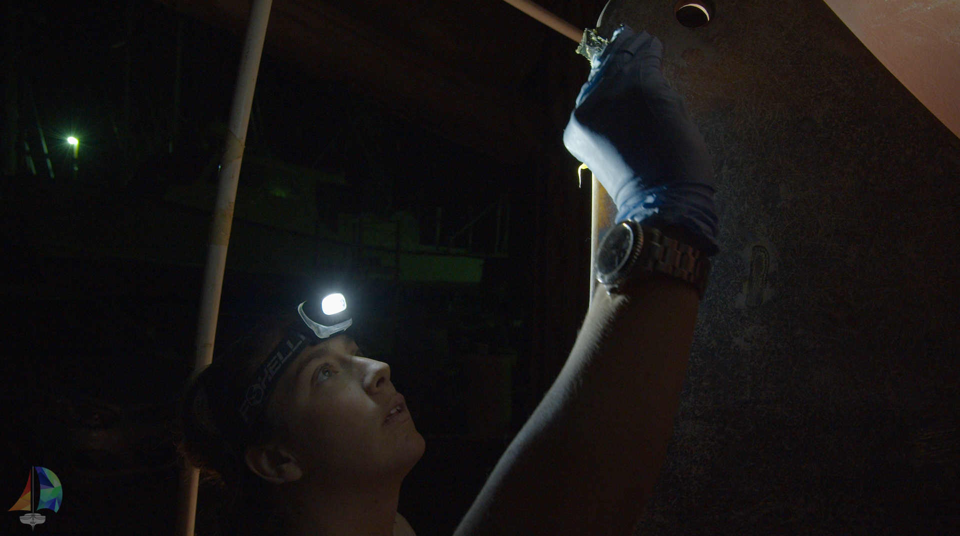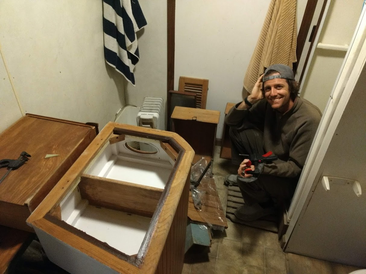 working in the heated boatyard bathroom on a cold night