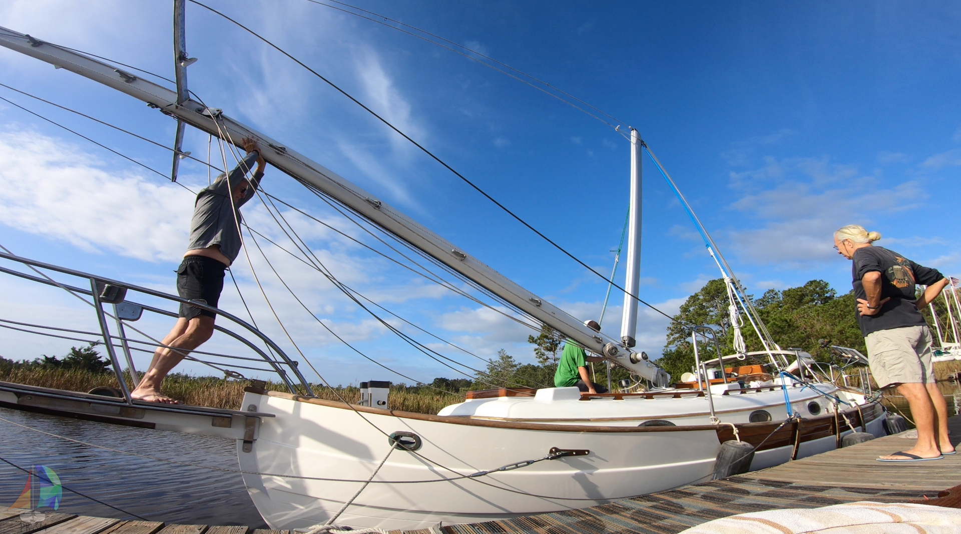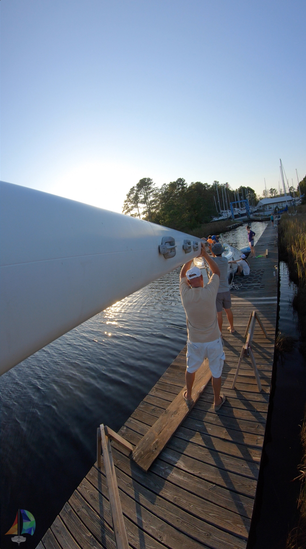 getting the mast on the boat